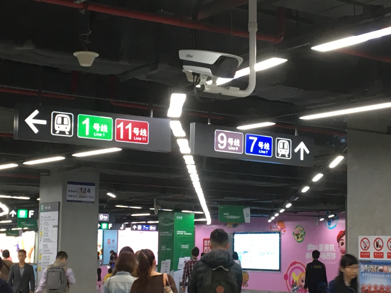 7号線、9号線、11号線への乗り換えもできることから、構内も大勢の人が行きかっていました。