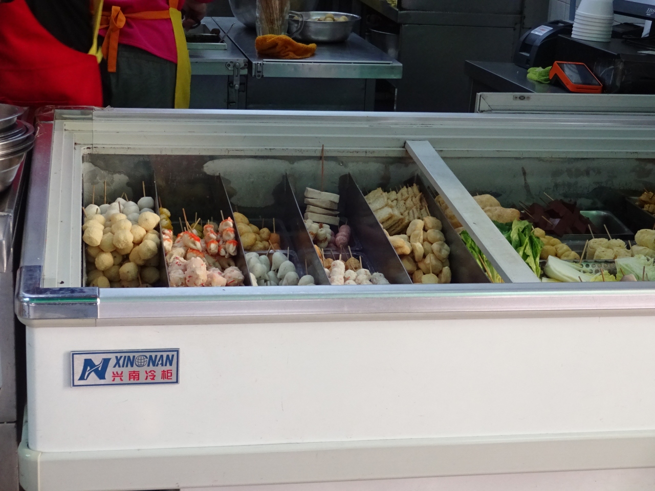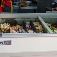 棚に具材が並んでおり、日本のコンビニのように自分でピックアップして、店員に渡すと茹でてくれます。