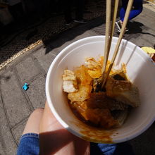 カレー味のたれがかかったおでんです。なかなか美味しいです