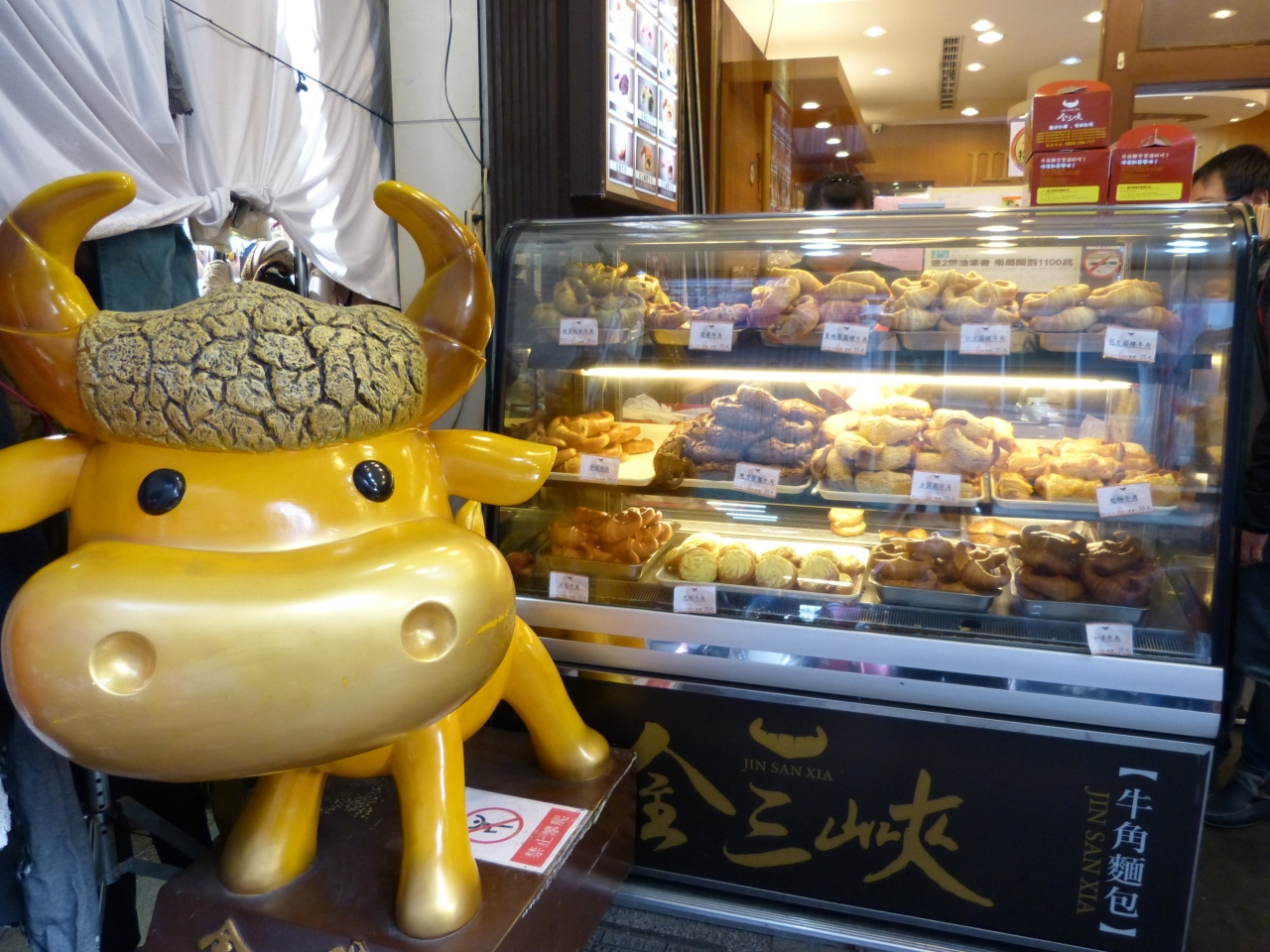 三峡名物として牛の角の形をした「牛角」というお菓子があります。ガイドさんから紹介されましたが初めて見ました。老街の中にも何... 続きを読む軒か牛角のお店はありましたが、老街入口のこのお店が一番人気のようで混雑してました。バニラ風味の基本からコーヒー、黒糖、パイナップルケーキのようなものやジャムの入った物等多種類ありました。賞味期限が4日間位と短めですが、旅行中に食べようと購入しました。感想を言うなら味のついたソフト乾パンという印象です。