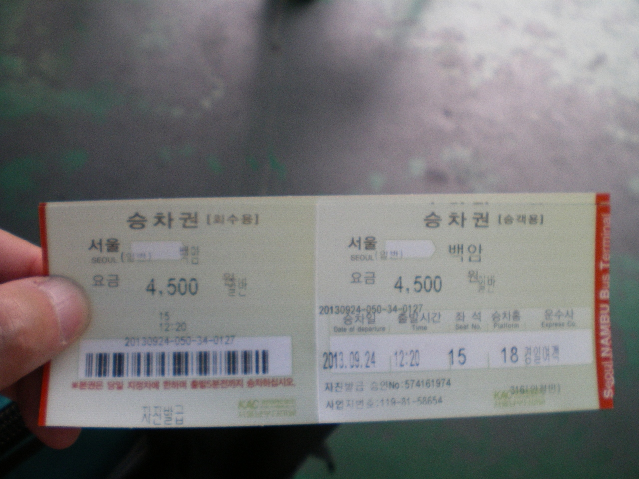 白岩行きのバスチケット、白岩は3つ目の停留所・所要1時間
