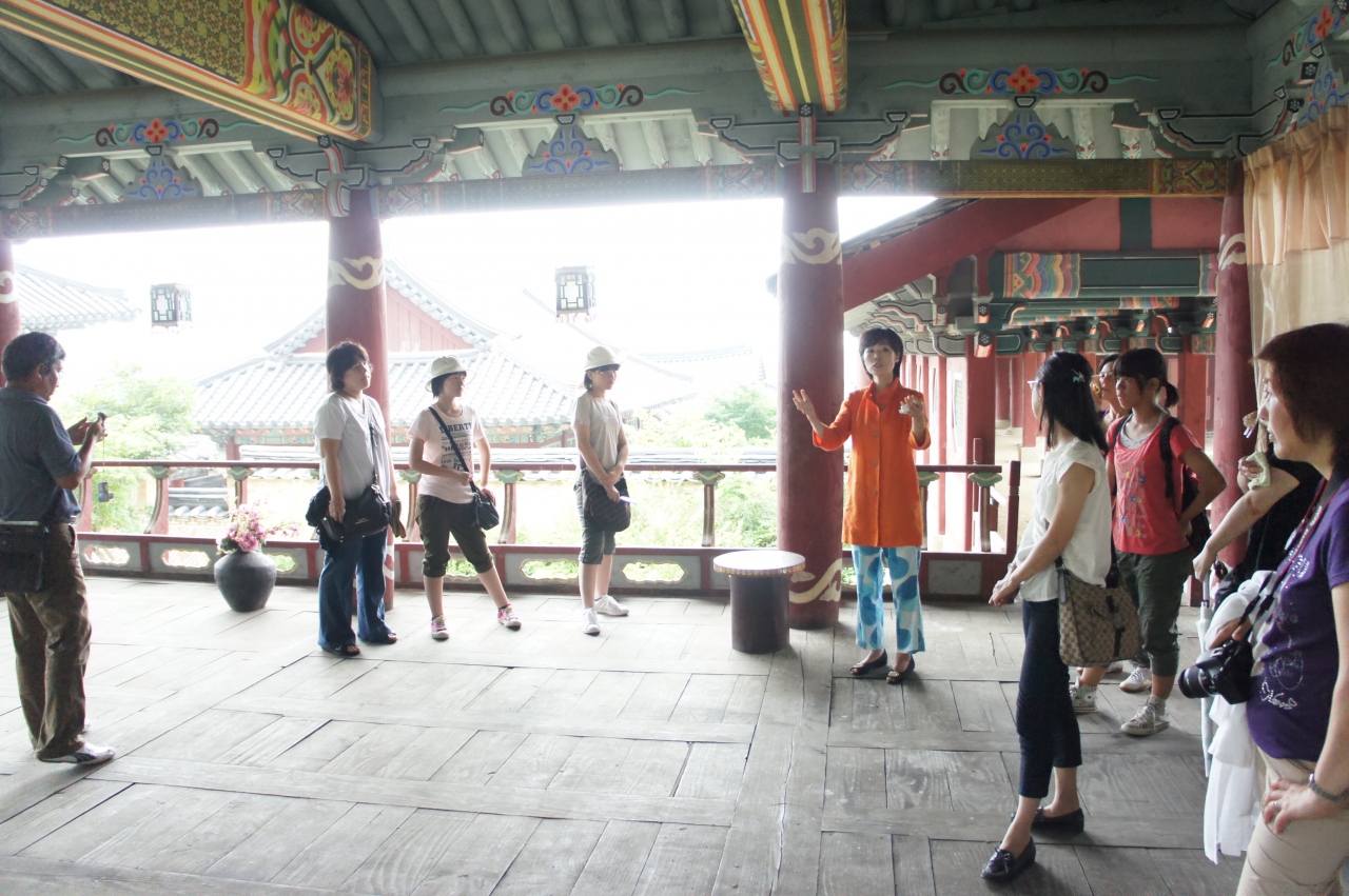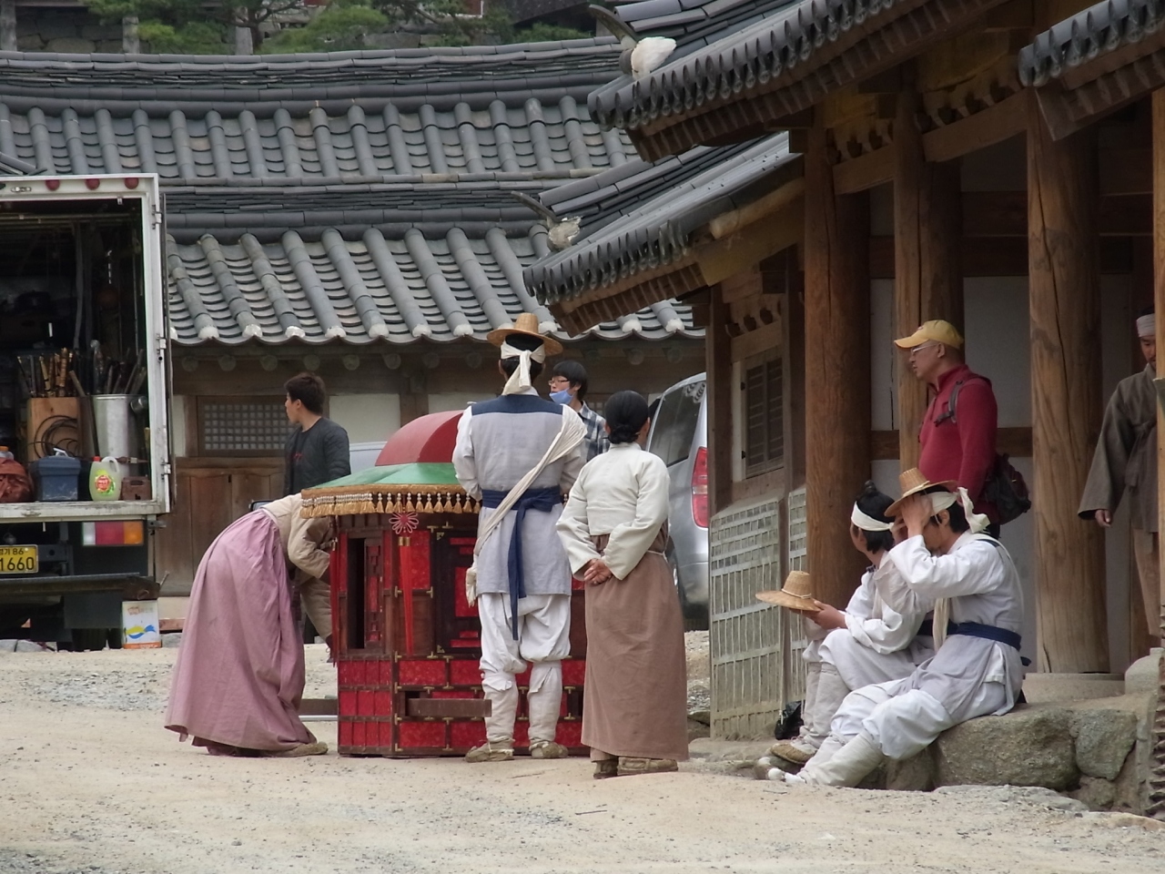 ここは撮影に使用中のロケセットのため個人では行けずツアーで申し込まないと行けません。 明洞からマイクロバスで1時間ちょっとでしたがKARAのスンヨン似(?)のガイドさんの楽しいおしゃべりを聞いている間に到着しました。