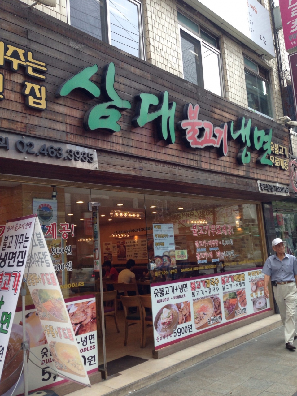 カルビは開店直後でも冷え冷えの作り置きで、「これは日本人だからいぢわる?」と思ったら周りの地元のおぢさんたちも冷え冷えを文句言わず食べてました。暑い季節ならいいけどソウルって大体日本より寒いから、カルビはあっためて欲しい。。。
