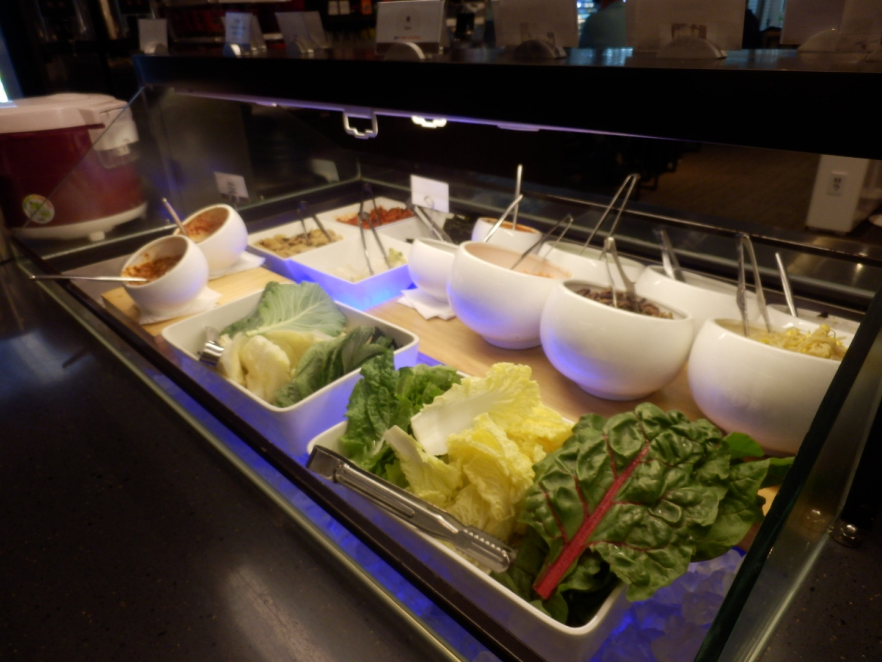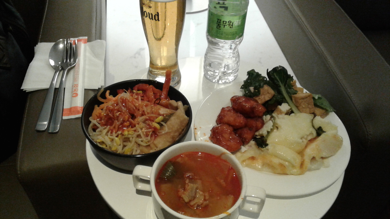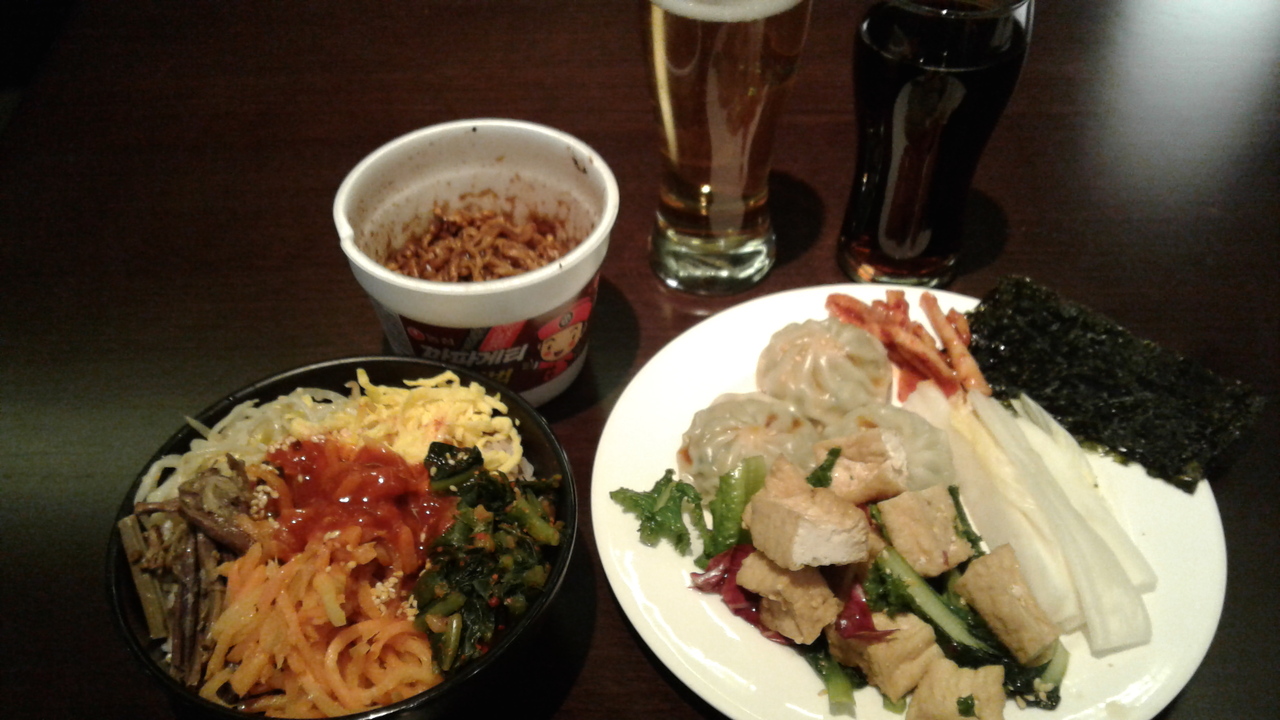食事はそこそこ種類がありました。野菜が多いと思って一瞬感激したのですが、ビビンバ用のもので、味付けが濃く、油こっかったです。サラダ用の生野菜も用意してほしかったです。
