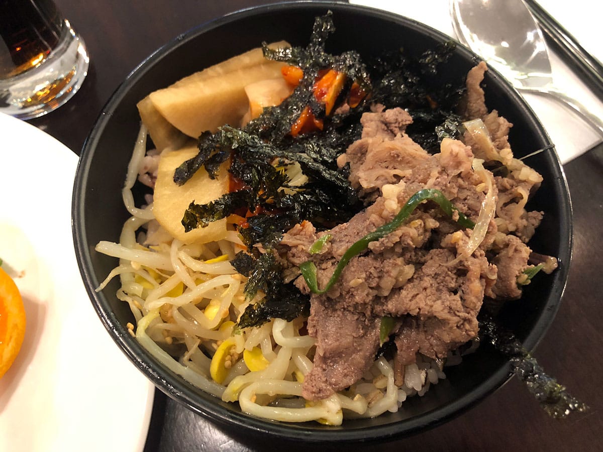 ビビンバは自分で好きな具材を選んで作成できるのですが、とてもおいしく朝からビールが進んでしました。