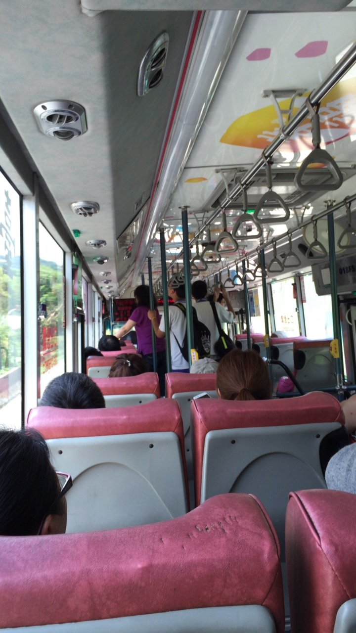 普通の路線バスなのでちょくちょく止まりますし、シートも滑りやすい。