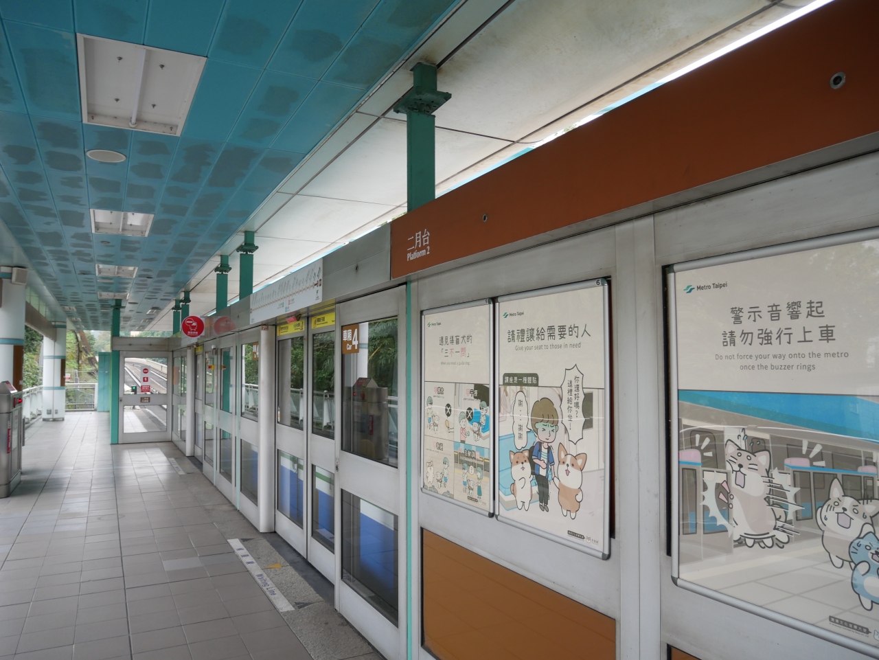 MRT文湖線(棕線)の、終点から一つ手前の駅。山裾と高級マンションの脇にある静かな環境の駅である。
