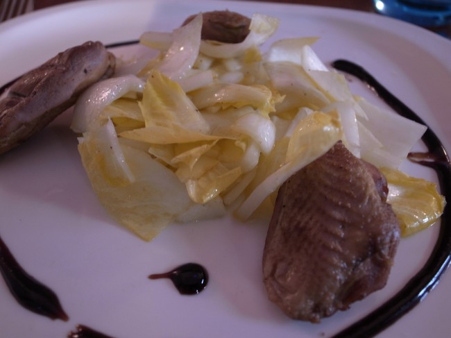 そこで、鴨の前菜と、本日のお魚のグリルを頼み、後から追加でデザートとカプチーノをいただきました。