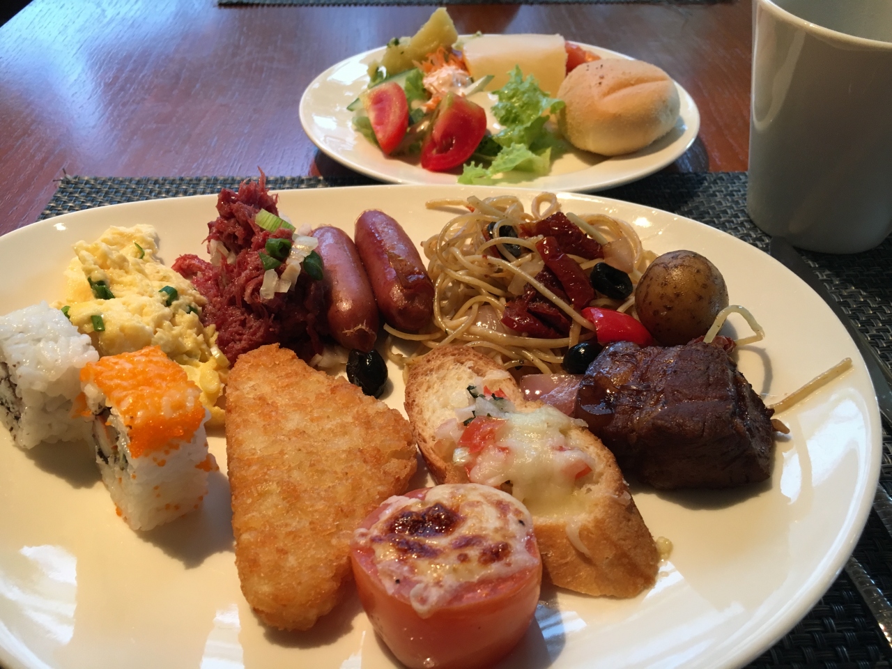 タイズとアクアの比較ですが、規模はタイズが圧倒的に大きいですし朝食のブッフェの料理の品数も豊富です。
