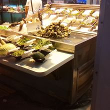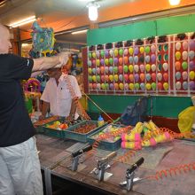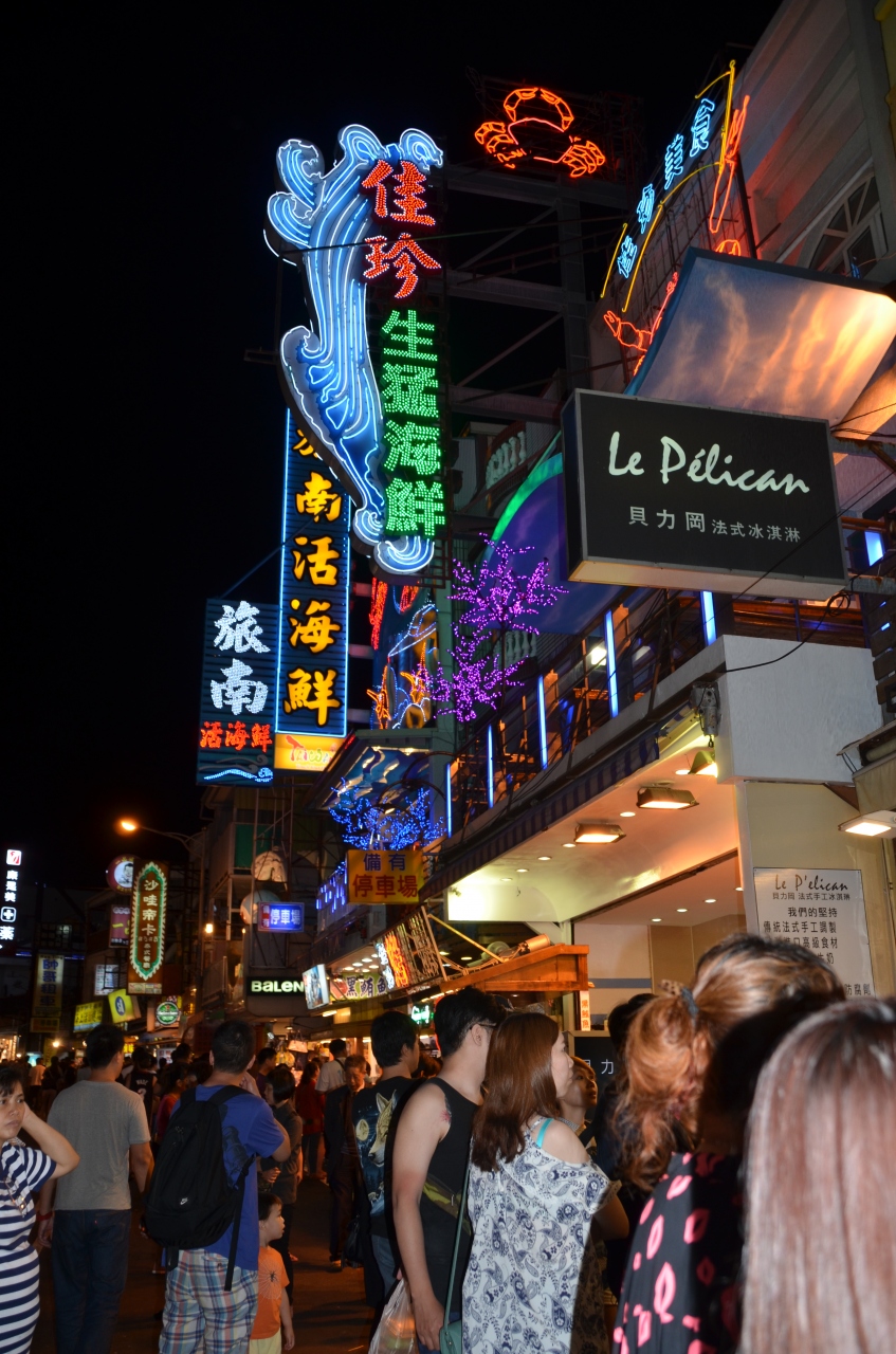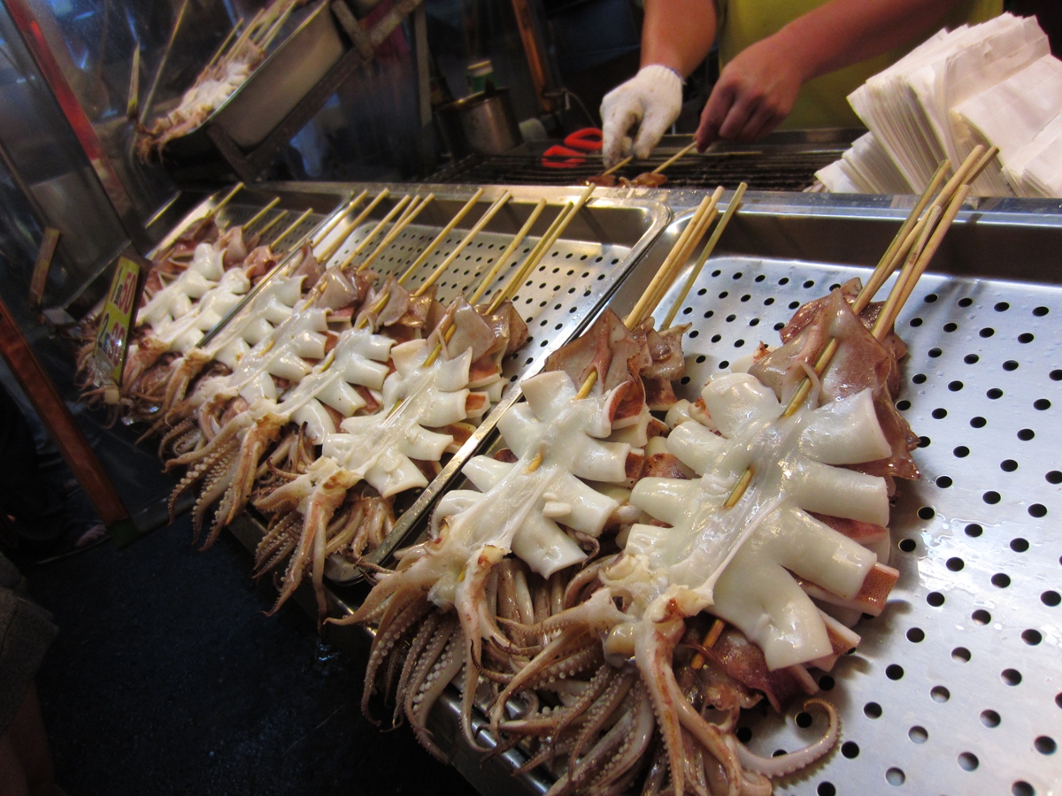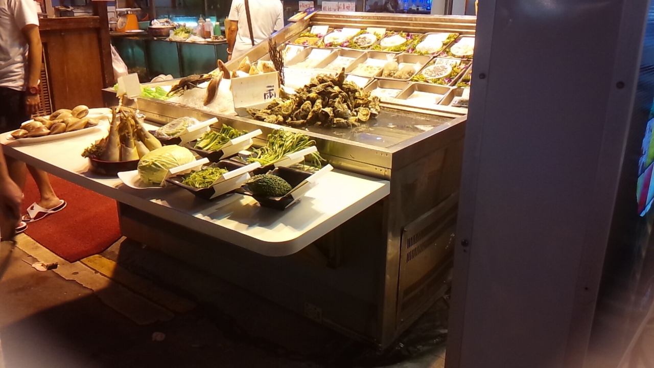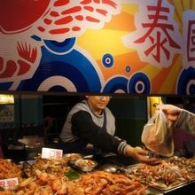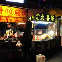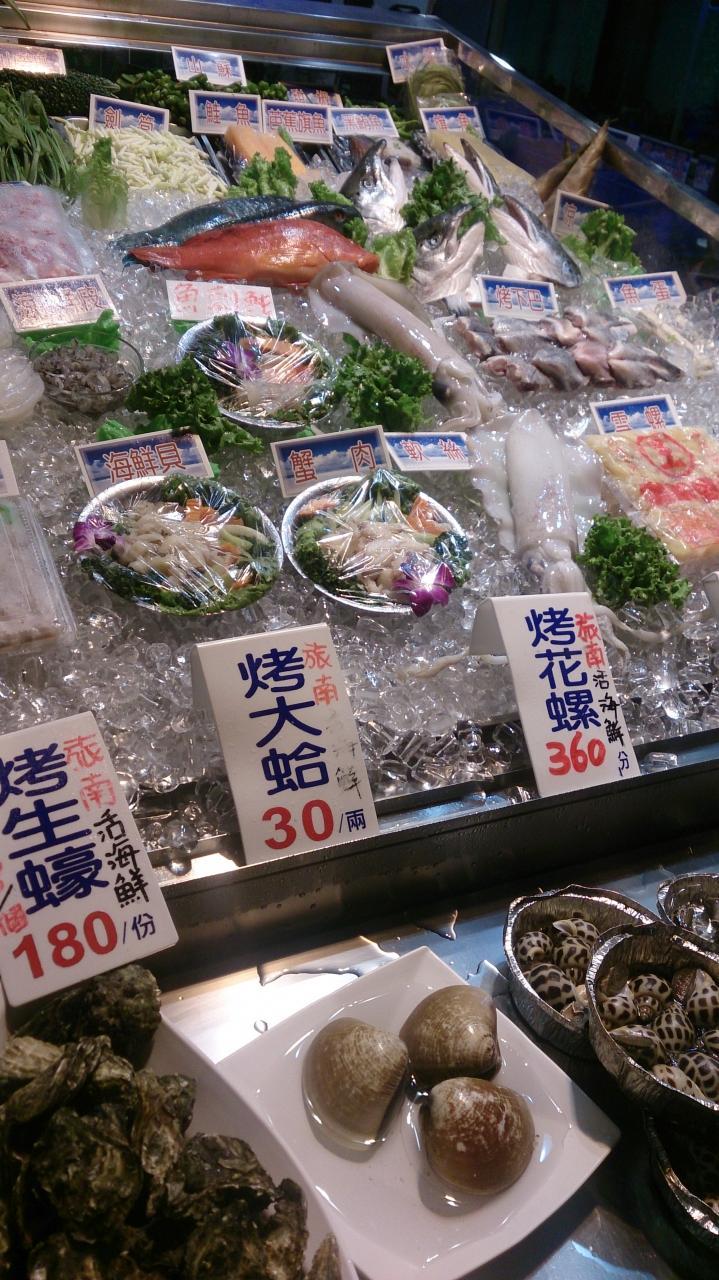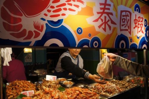魯肉飯とか麺線とか蚵仔煎とか、台北市内などの夜市でよく見かける定番屋台料理はなく、海産物系や揚げ物がメインのようでした。