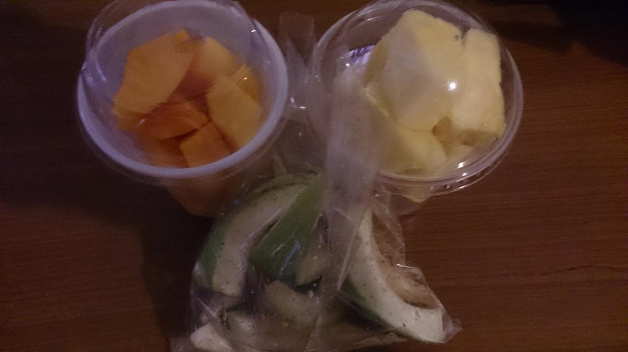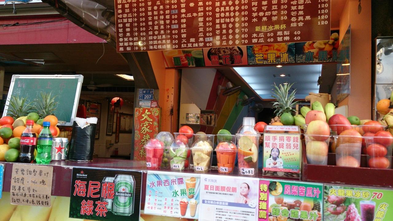 マンゴー・パイナップル・グァバなど1つ40元、3つ買うと100元。