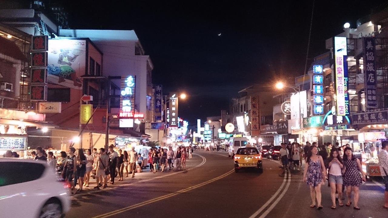 墾丁のメインストリート・墾丁大街を東西2kmほどに屋台が連なる夜市です。