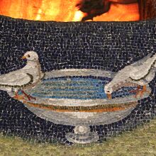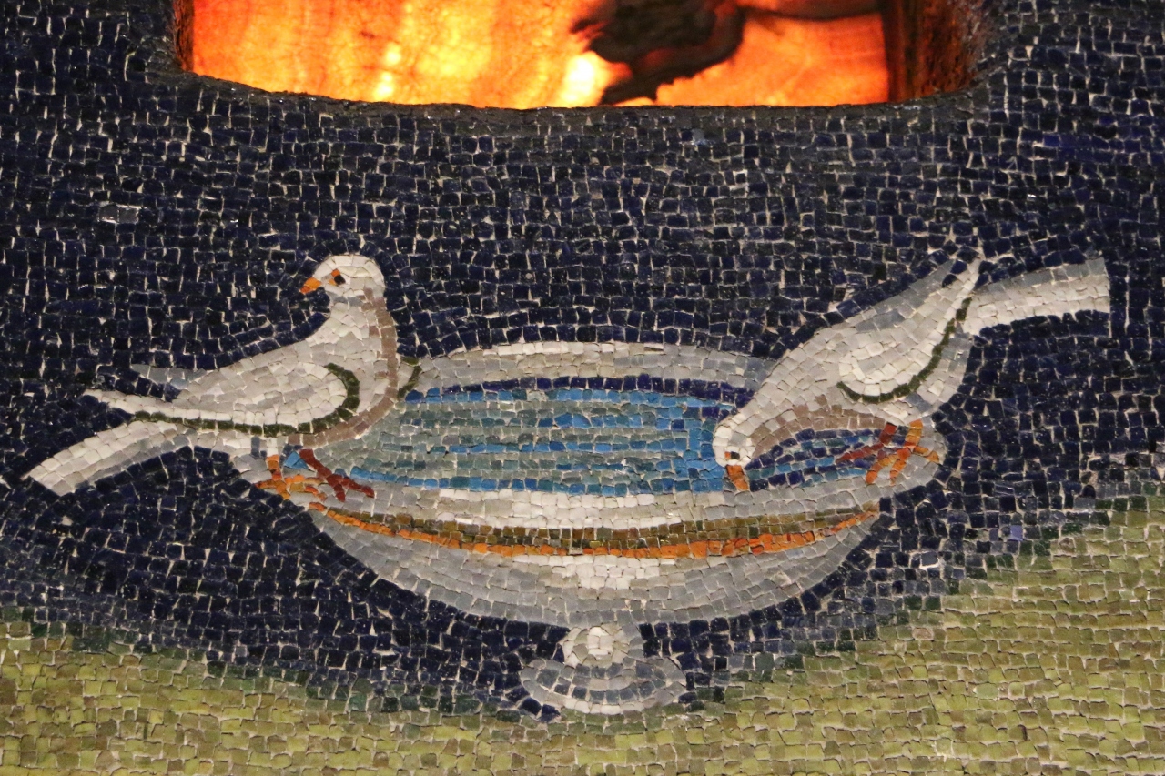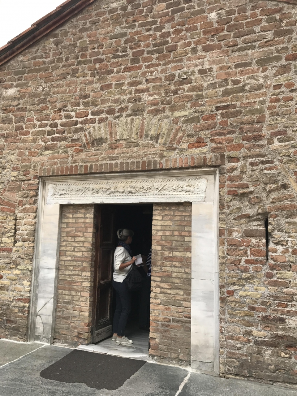 後、忘れてはならないのは石棺の反対側、霊廟の扉の上のモザイク画です。