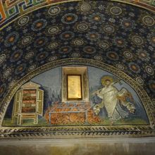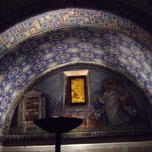 5世紀前半にガッラ・プラキディアの寄進により殉教者を祀る為に建てられた礼拝堂です。中は狭いですが、四面、天井に紺色に金色の... 続きを読む十字架、星のモザイクが素晴らしく、羊や鳩のモザイクもあります。大理石を薄く削った窓から光が差し込み美しいです。 閉じる