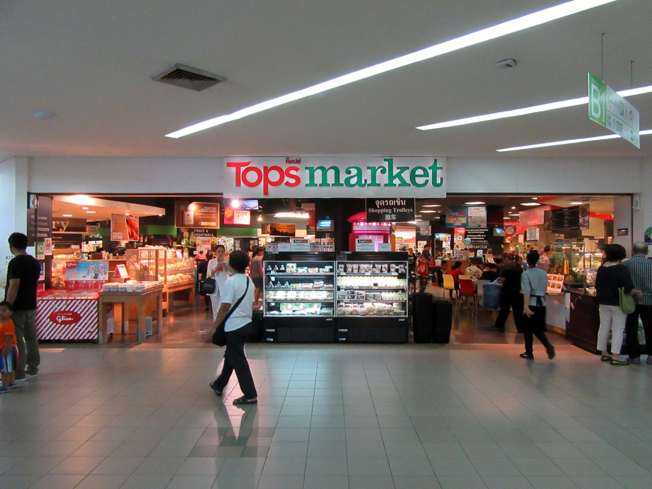 地下は、携帯電話店舗(sim買えます)にフードコートそして1階には銀行、TOPSスーパーマーケット、2階から4階がセントラルデパート、5階がシネコンなどになっている。