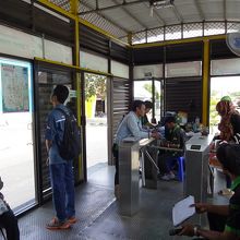 バスの停留所に特徴があり、ちょっとした小屋になっているのですが、その小屋の入口に改札口があり、その横に(大概)女性が座っていてそこでお金を支払ってチケットをゲットして、改札口を通って小屋に入るシステムです。バスはその小屋のすぐ横にとまり、小屋からバスに乗り込むようになっています。ただ停留所には何本もの路線のバスが止まるため、小屋の中はごったがえしているのですが、下手をすると乗り損ないそうです。また、混んでいる停留場では小屋の中にはいることができず、外で待機せざるおえない人がいて、目的のバスが来ても小屋の中まで入れなかった人はたぶん乗れないんだろうな~などど思い、ちょっと要領が悪いな、って感じでした。