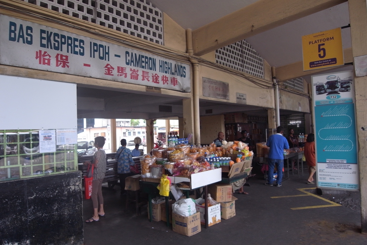 イポーの鉄道駅より、正面の大通りを南に300メートルほど進んだ先の交差点にあります。クアラルンプールなどとを結ぶ長距離路線... 続きを読む用ではなく、近郊路線や、市内バスの結節点のような機能を持っています。バス乗り場(降り場)内の大きな建物に、切符売り場や売店がありますが、東に離れた長屋(駅側)に、商店(雑貨や、飲み物、Simカードまで)や食堂が連なっています。