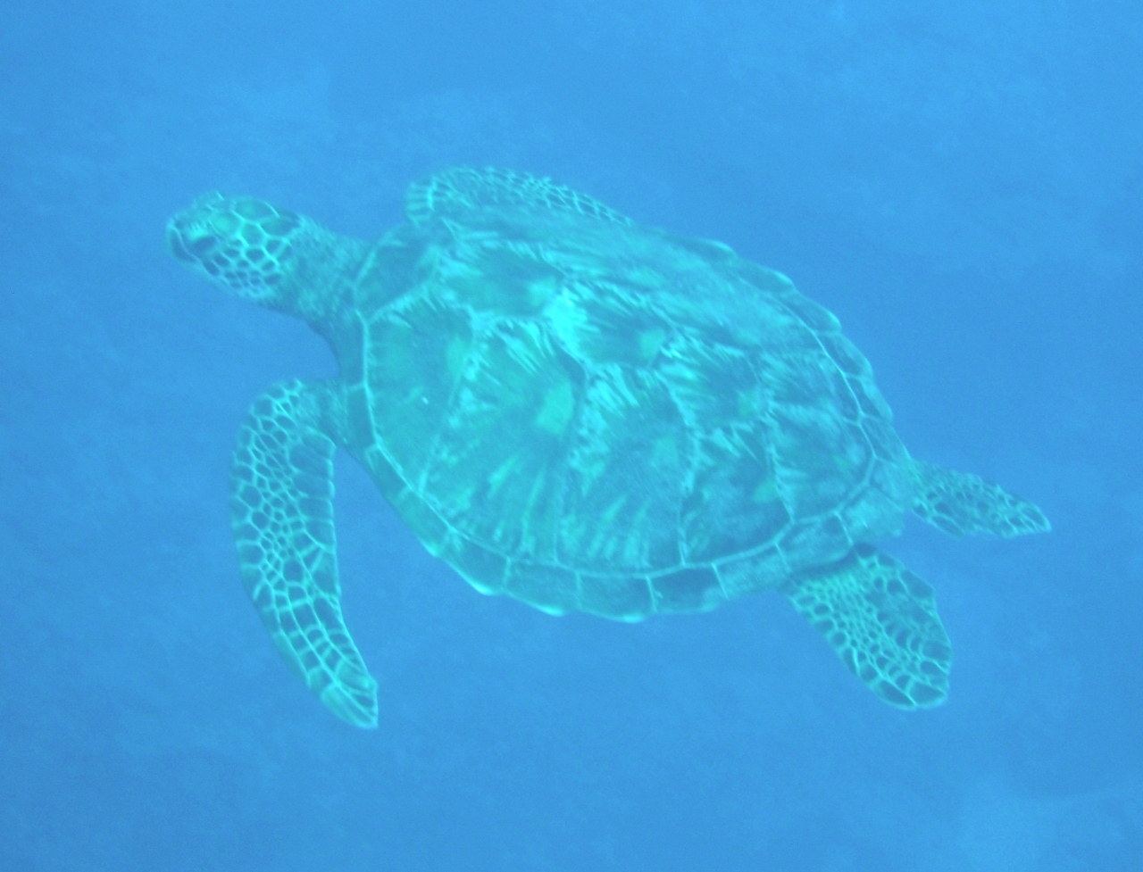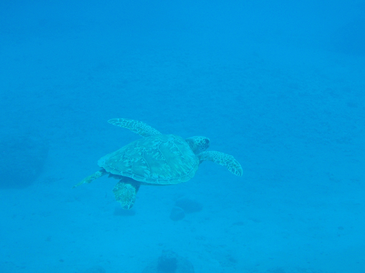 水深は10m前後のところで探します。ライフベストは任意で、個人の力量に任されていますので、カメを見つけたら潜って近づくことが出来ます。