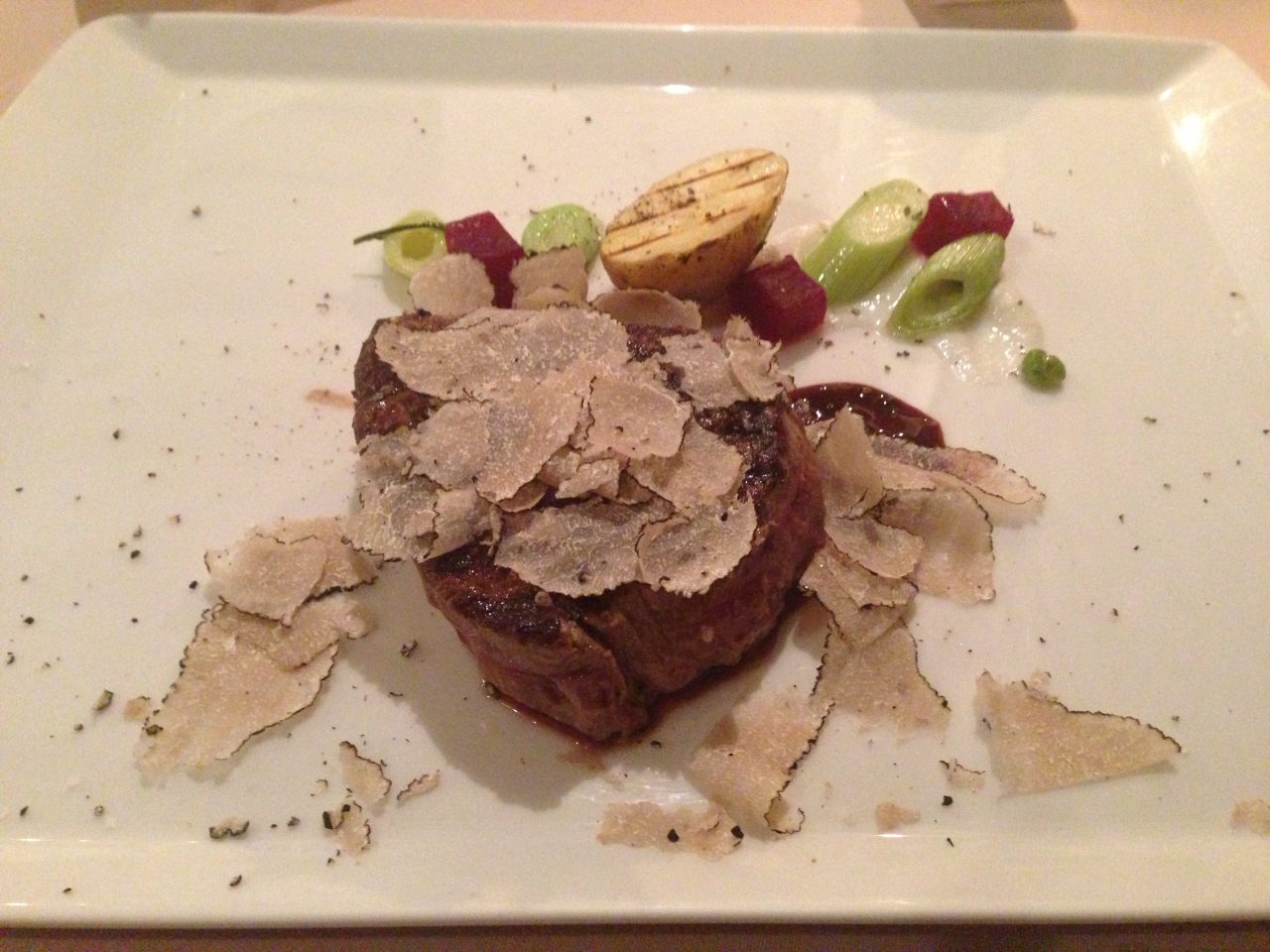 というのも... 続きを読む、ここはトリュフ尽くしのお料理が楽しめるからです。たとえば、前菜にトリュフの入ってない生ハムをオーダーしたら、いただく直前に採りたてのトリュフをこれでもかこれでもかと削ってかけてくれます。メインコースも然りで、ごく普通のことであるかのように、まるで削り節をおひたしにかけるような自然さで、あらゆるお料理に削りトリュフをかけてくれます。とても贅沢です。