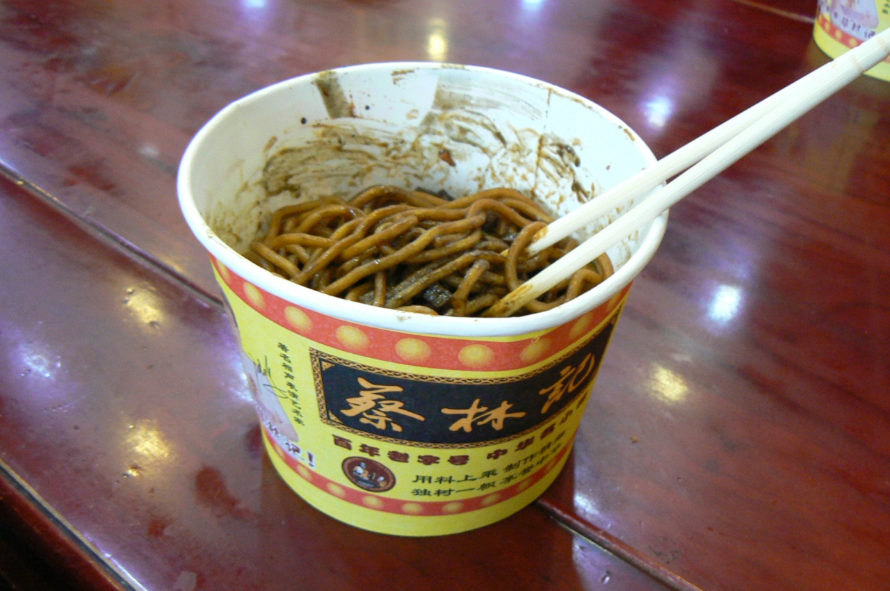チェックしてきた武漢名物の熱干麺を食べるために「蔡林記」と言う店を探しましたが、間違って歩いていたため少し時間がかかり、店を探し当てた時はもうお腹がペコペコでした。(「蔡林記」は2か所ありました。)