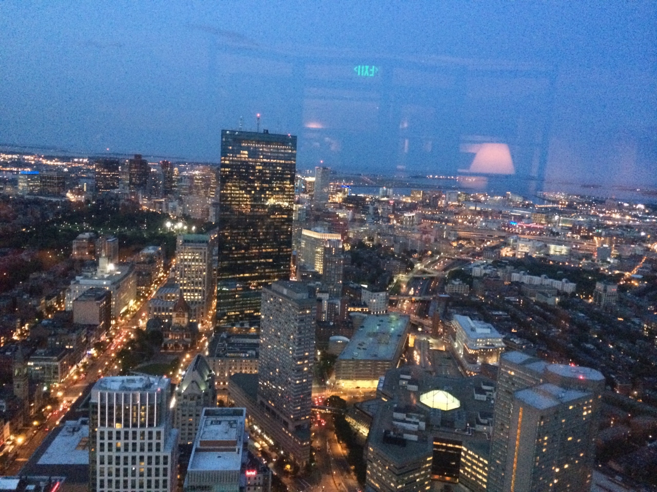 プルデンシャルセンターの52階にあり、ボストンの夜景とともに、美味しい料理がいただけます。完全に日が暮れてからの夜景はもち... 続きを読むろん綺麗でしたが、夏は夜7時でもまだ外は明るく、夜にかけて徐々に日が暮れていく景色も楽しめます。座る席によって、見える夜景もだいぶ違うようでした。レストルームを超えて進んでいくと、フェンウェイパークの明かりが煌煌と輝く夜景が楽しめます。希望できるのであれば、窓側の席の方が、より夜景の雰囲気を楽しめるかもしれません。食事はコース料理とクラムチャウダーを頼みました。コース料理では、シーフードもステーキも楽しめます。クラムチャウダーは、コショウが強めでしたが、それがまた美味しかったです。添えで提供されるクランベリーパンもとても美味しいです。クラムチャウダーもクランベリーもニューイングランド地方の名物です。料理もおいしいですし、雰囲気も楽しめるレストランです。