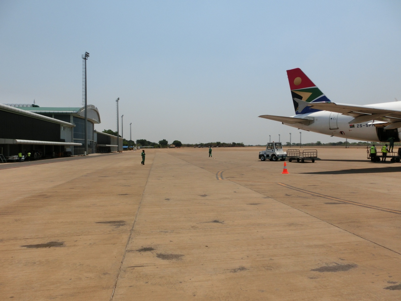 南アフリカ航空機のタラップを降りて、あとは歩きです