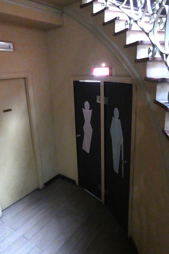 トイレは地階にあります。男性はステッキ持ってるんですね