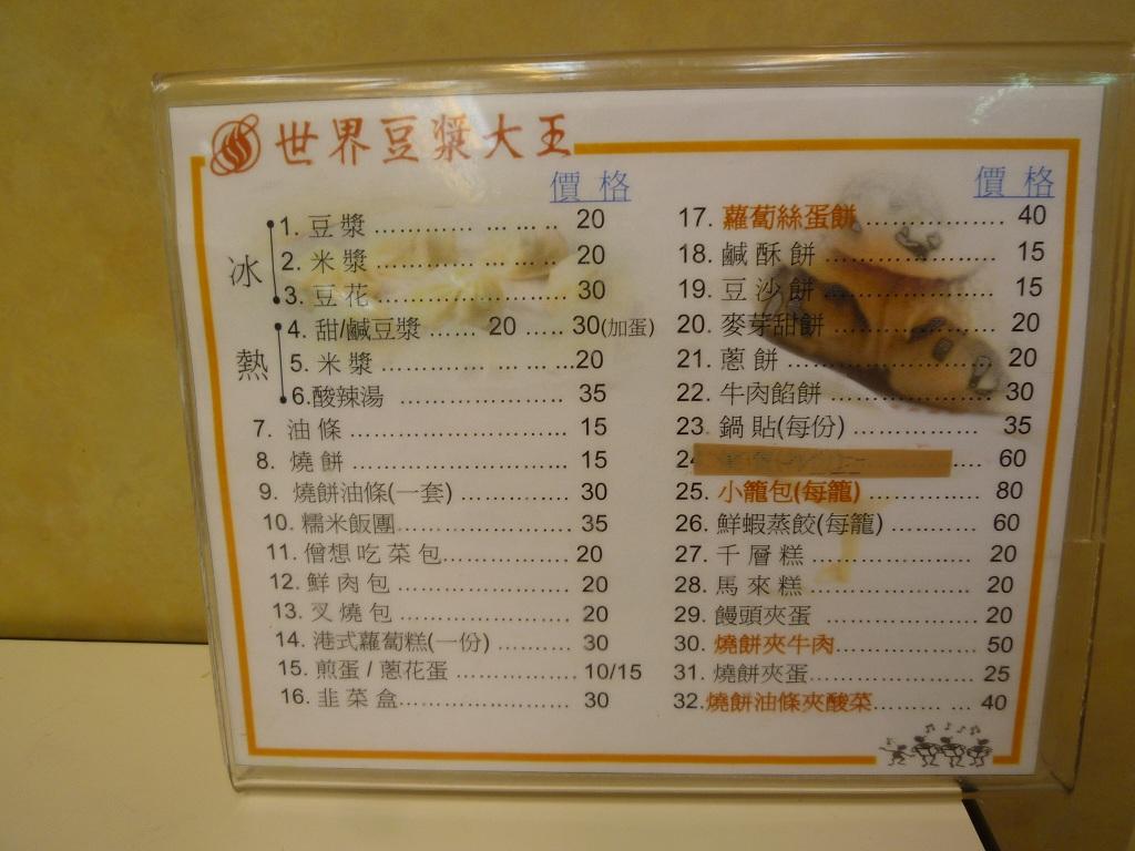 台湾、特に台北市内には沢山の永和豆漿店がありますが、ホントの永和豆漿は永和(新北市)にある世界豆漿大王。台北と永和をつなぐ... 続きを読む中正橋のたもとにあり、MRT頂渓駅から徒歩10分位のところにあります。もともとは、「永和豆漿」というお店でそのころから通っていたのですが、「永和豆漿」という名前のお店が増えすぎたためか、数年前に「世界豆漿大王」という名前に変わりました。もともとは「世界豆漿大王」はほかに支店を出さないというポリシーだったのですが、最近になって台北市内にも支店ができています。
