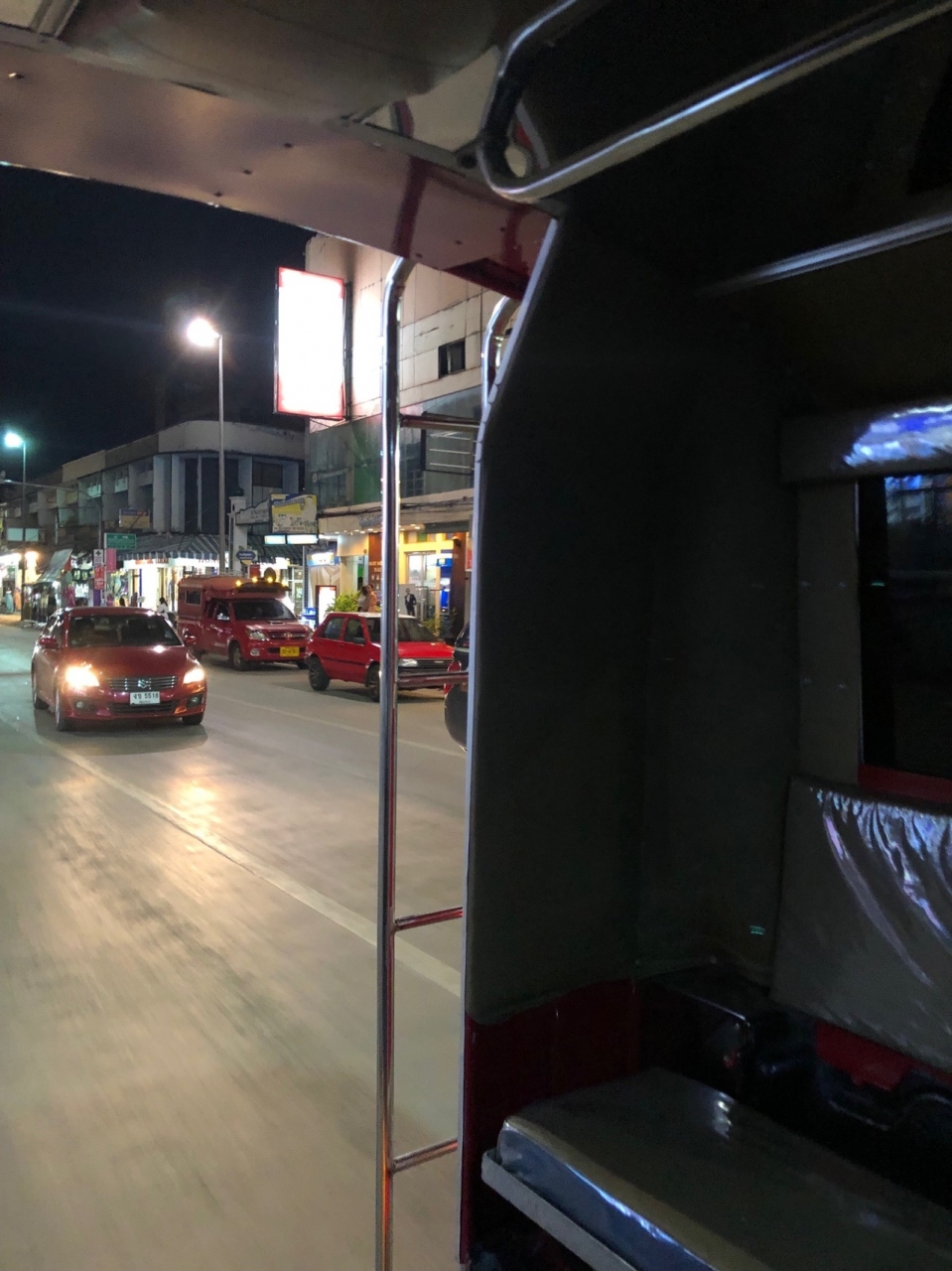 赤いソンテウは市内の近距離を移動するなら安いし便利です。旧市街で北側の門から、真... 続きを読む逆の南の門へ移動する際に使いました。歩くと30分はかかるので。行き先と同じ方向へ走ってるソウテウを止めて、乗りました。英語はあまり通じないと聞いていたので念のため、タイ語で書かれた行き先の名前をスマホで見せました。降車する際には車内のベルを鳴らすそうですが、乗客が私たちだけで外国人だったからか、ベルを鳴らさなくても停まってくれました。1人30バーツ。お金は降りるときに運転手に支払います。大きいお金だと、お釣りが無いこともあるそうなので、100バーツ以下の紙幣で支払いましょう。