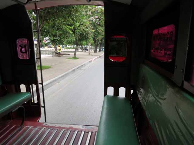 チェンマイに2週間ほど滞在してトゥクトゥクにも数多く乗りましたが、ソンテオのほうがいつも気持ち良く乗れました。旅行前は何と... 続きを読むなく交渉がめんどくさそうとか行先が違ったらなんて考えていましたが、道路の左側を歩いていると後ろから軽くクラクションを鳴らして徐行してくれます。(左側を歩くことがポイントです。)行先を伝えると頭の中でルートを考えて余程とんちんかんな場所でない限り乗せてくれるでしょう。料金を吹っかけられたことは一度もありませんでした。降りるところが近づくと運転席から合図してくれるのでいつも安心でした。トゥクトゥクで「イーパイ!(中国語で100)」なんて吹っかけられるトゥクトゥクよりよっぽどチェンマイを感じることが出来ると思います。 閉じる