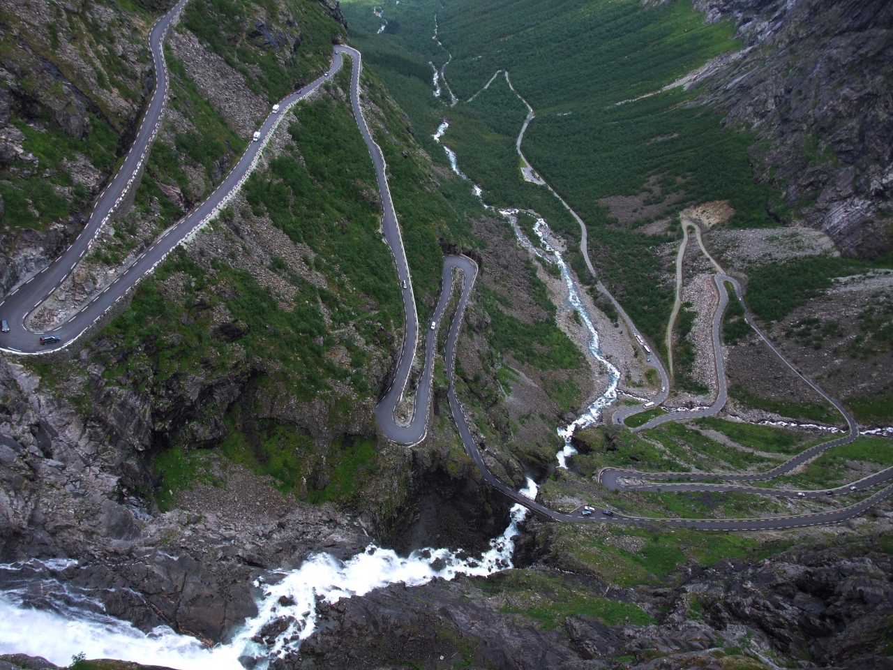 ノルウェー語でトロルが架けた梯子道と云う意味の地名で、急な山肌に沿うように道が走っている。
