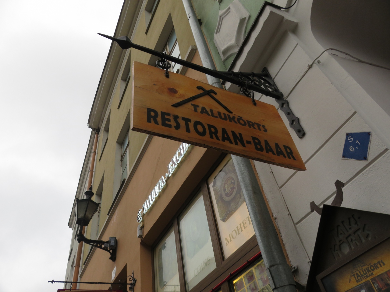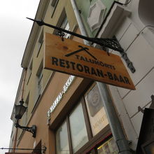 建物の入口。上にぶらさがっている看板が目印