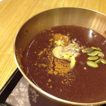 おやつにタンパッチュ(お汁粉のようなもの)をいただきました。8,000W。
