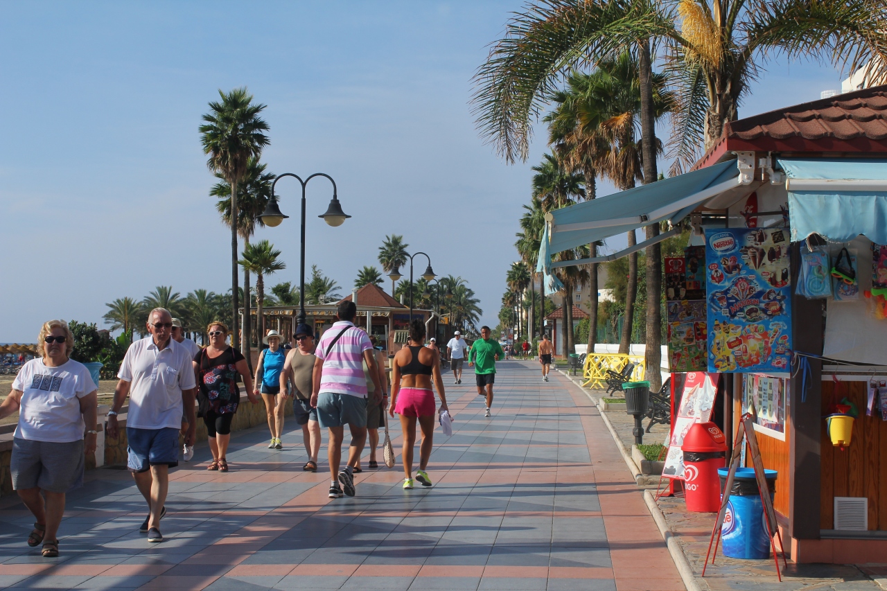 真っ青な空に、青い海、海岸沿いの遊歩道には“チリンギート”(スペインの屋台)が並び、ゆったりリゾート出来ます