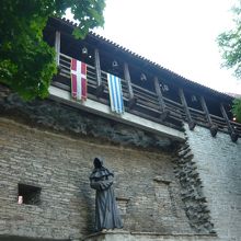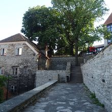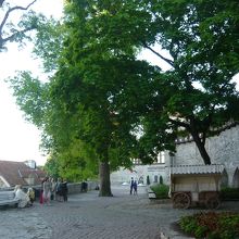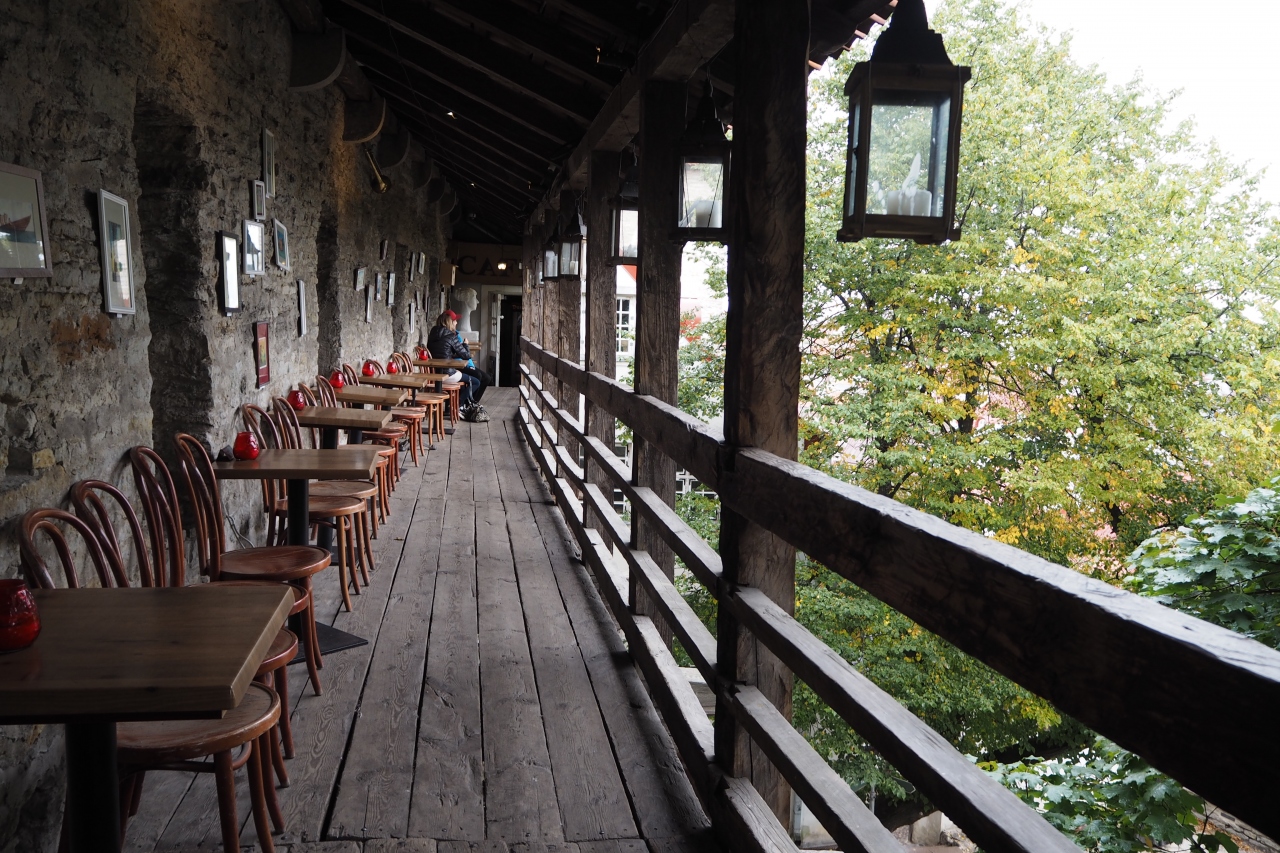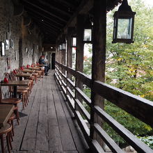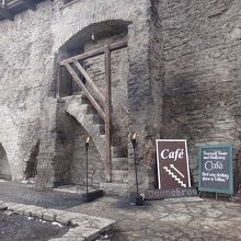 カフェの入口。ここから城壁に登れたのですが、煙が煙くて煙くて