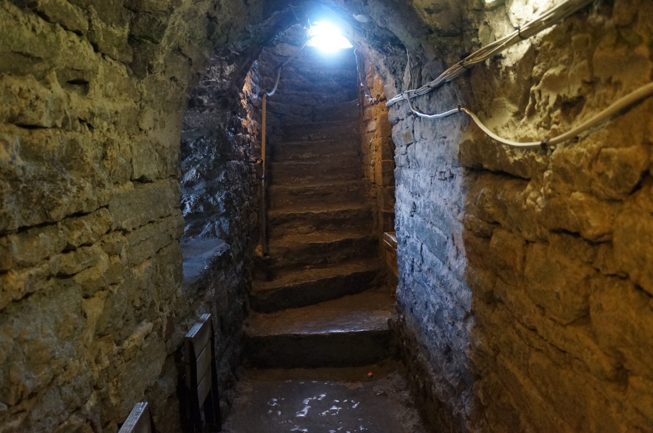 最上部にあがるには、中世以来からの暗くて狭い階段をひたすら上り続けるしか方法がありません。人1人が通るのがやっとの空間(すれ違う時には曲がり角などを使う…)で、結構しんどいので覚悟が必要。