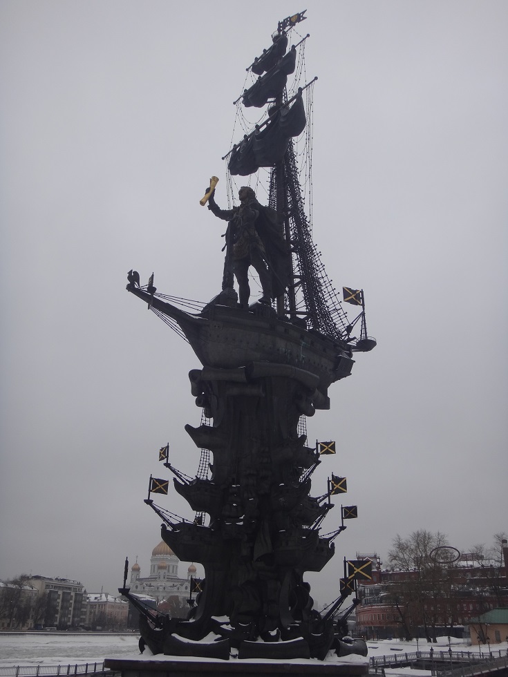 クルーズ船がモスクワ川を西方から東方に進むと、目の前に巨大な像が見えてきます。クルーズ船はこの像の脇を通過しますので、全体像をしっかりと観察することが出来ます。クレムリン城塞内に展示されている鐘の皇帝や大砲の皇帝も巨大で重量がありますが、この像も重量と巨大さでは他に類を見ないように思います。ロシア人は昔も今も巨大が大好きなのかも知れません。 閉じる投稿日:2017/10/04
