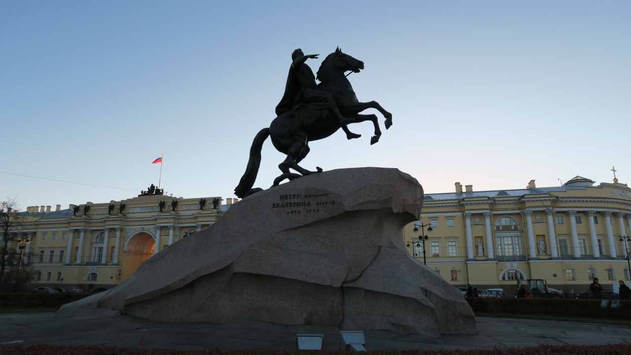 ピョートル大帝が馬にまたがった青銅の騎士像