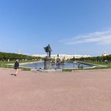 ぺテルコフ夏の宮殿の前庭として広大にシンプルに造られています。