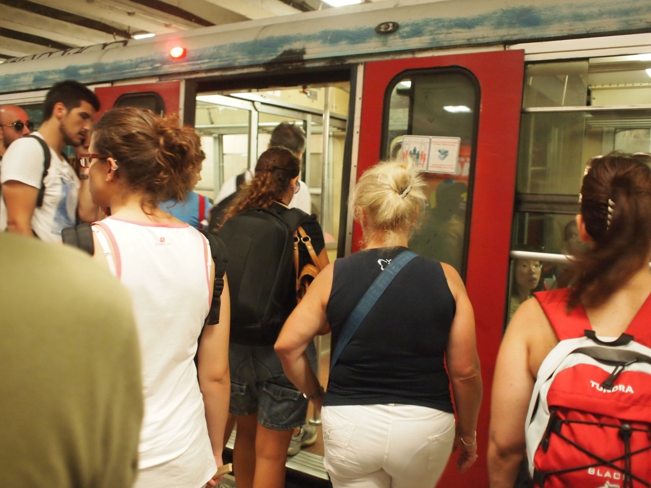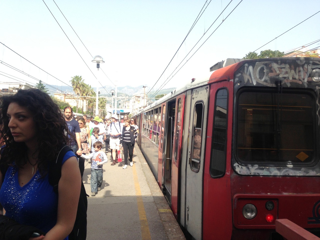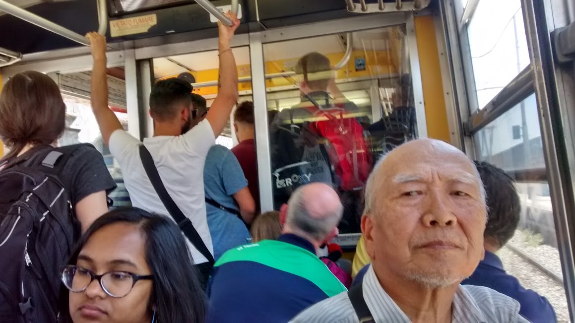 ナポリの地下鉄やイタリア国鉄は混んでいたとしても騒がしくはなかったのですが、それとは明らかに客層が違う感じでした。