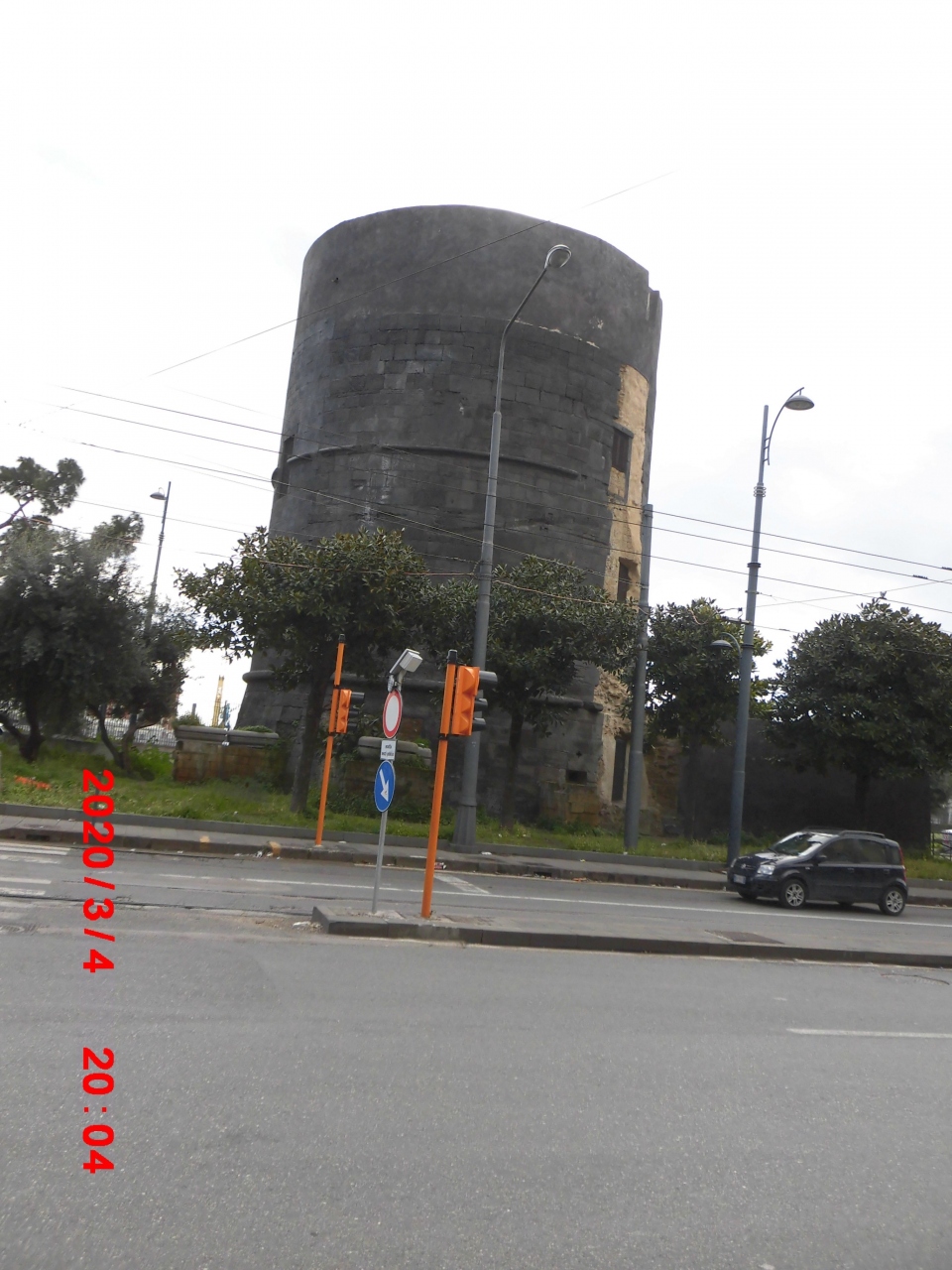 円筒の砦跡が残っている通り