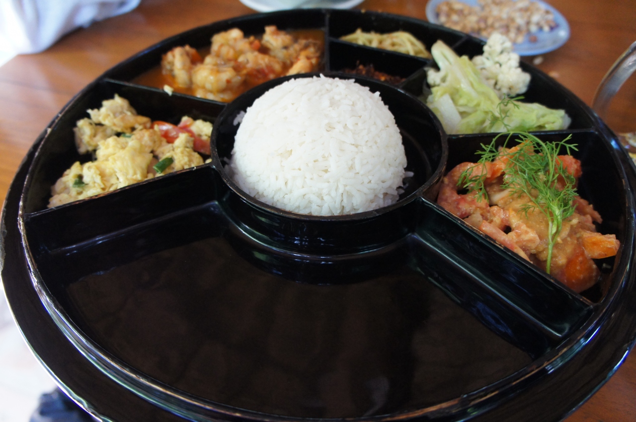 バガンの観光の途中にガイドさんが連れて来てくれました。ほとんどのお客が観光客でみなさんガイドさんに案内されて入ってきます。... 続きを読む昼食付のツアーだと安いお店でないと予算をオーバーするので必然的に美味しくて安いお店になるのだと思います。カレーのセットが5,000チャット、ビールが1,800チャットとお手頃価格です。注文した川エビのカレーはエビがごろごろ入っていてとても美味しかったです。カレー以外にも3品野菜炒めなどの副菜がセットになっています。トリップ・アドバイザーの2014年のアワードのプレートも飾ってありました。食後にはタマリンドのお菓子とフルーツがサービスされます。時期にもよると思いますが少しハエが気になりました。 閉じる