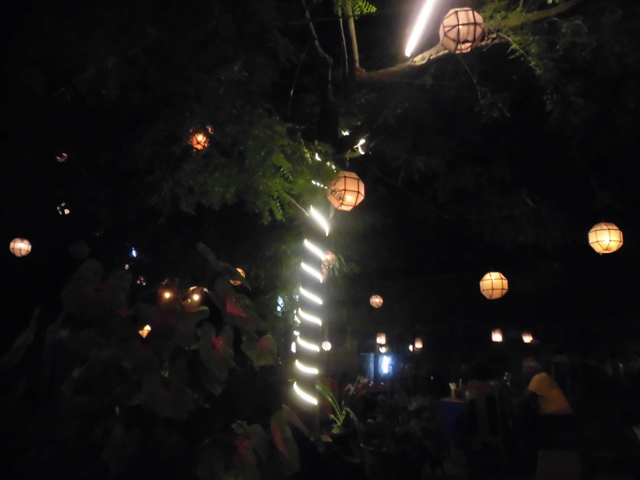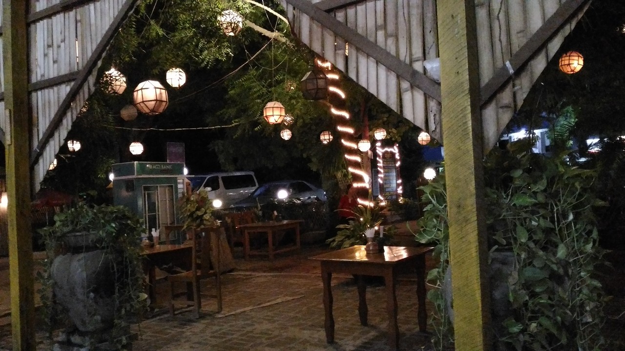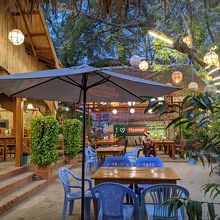 店内(というか半オープンテラスでほぼ屋外)は暗めで、入り口の提灯とラジオから聞こえてくる音楽で、アジアを感じられます。