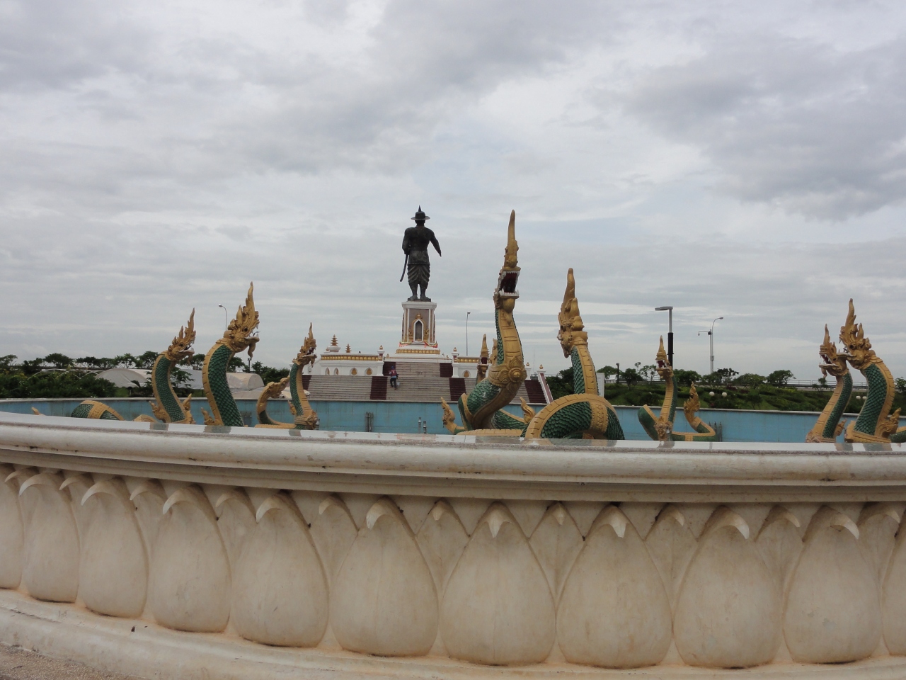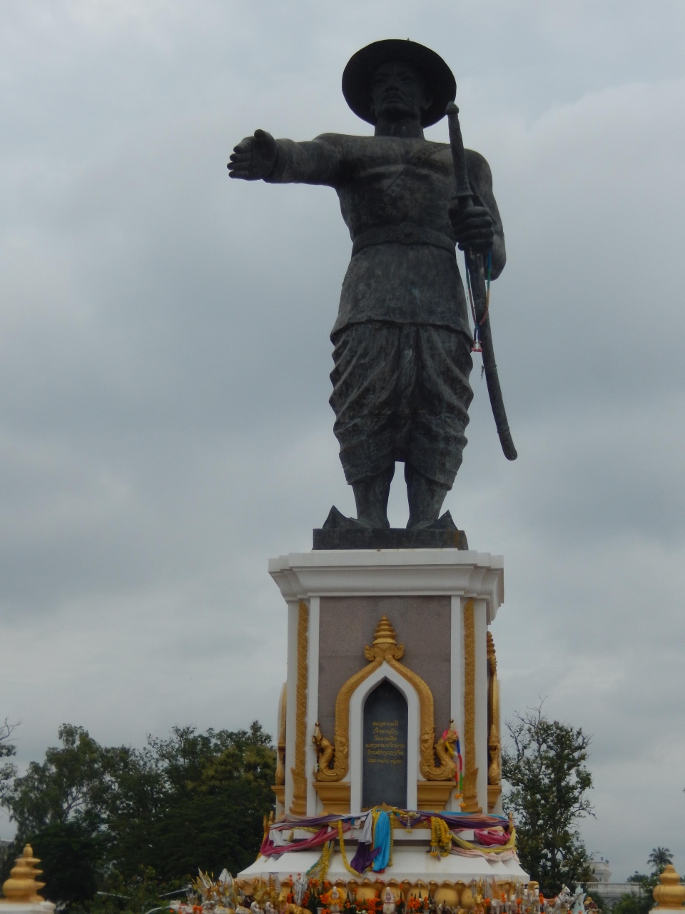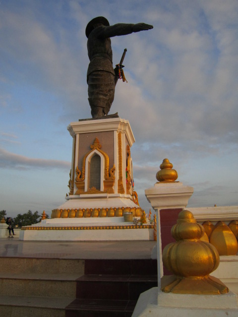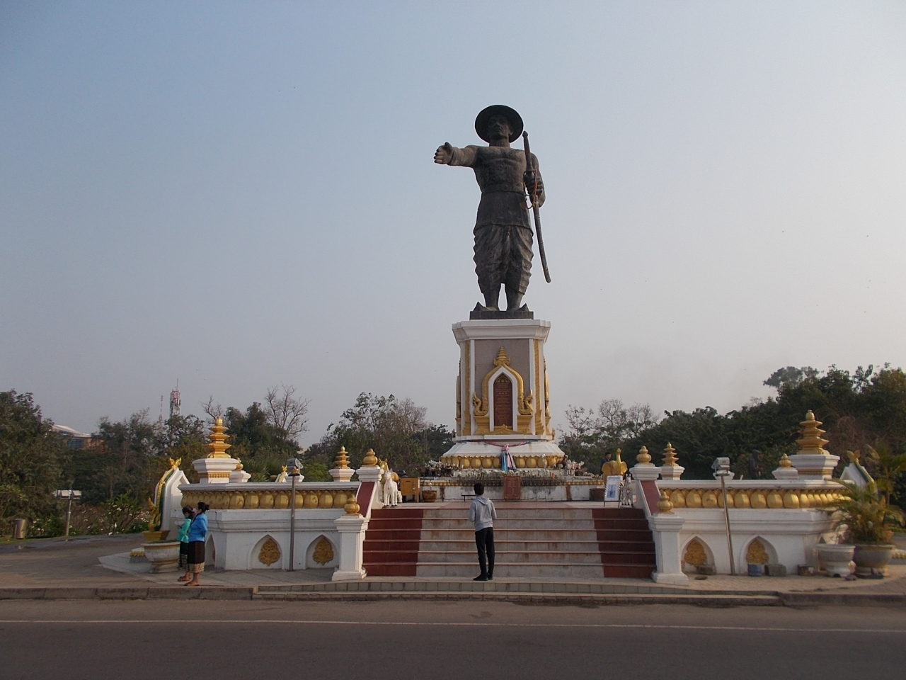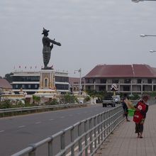 像は手を斜め下に突き出しているのですが、地元の人にきくと、これは領土の取り合いをしていたタイ国に対し、メコン川の中央部を指し、ここから手前を自身の領土だと宣言している....という事です。