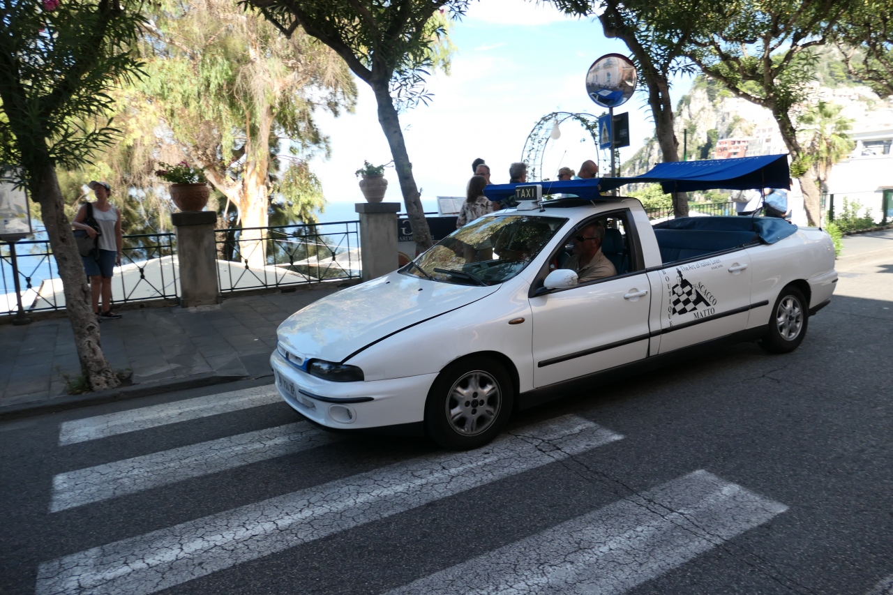 アナカプリのバス停付近でユニークなタクシーに出会えます