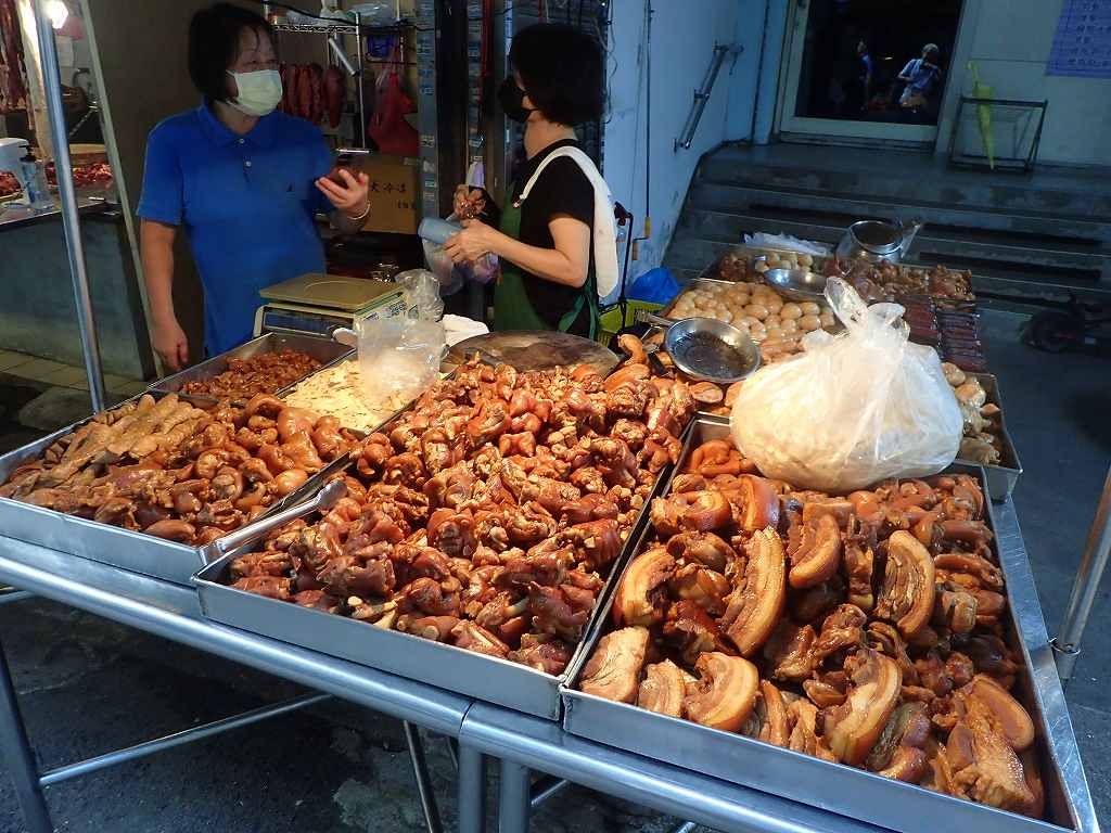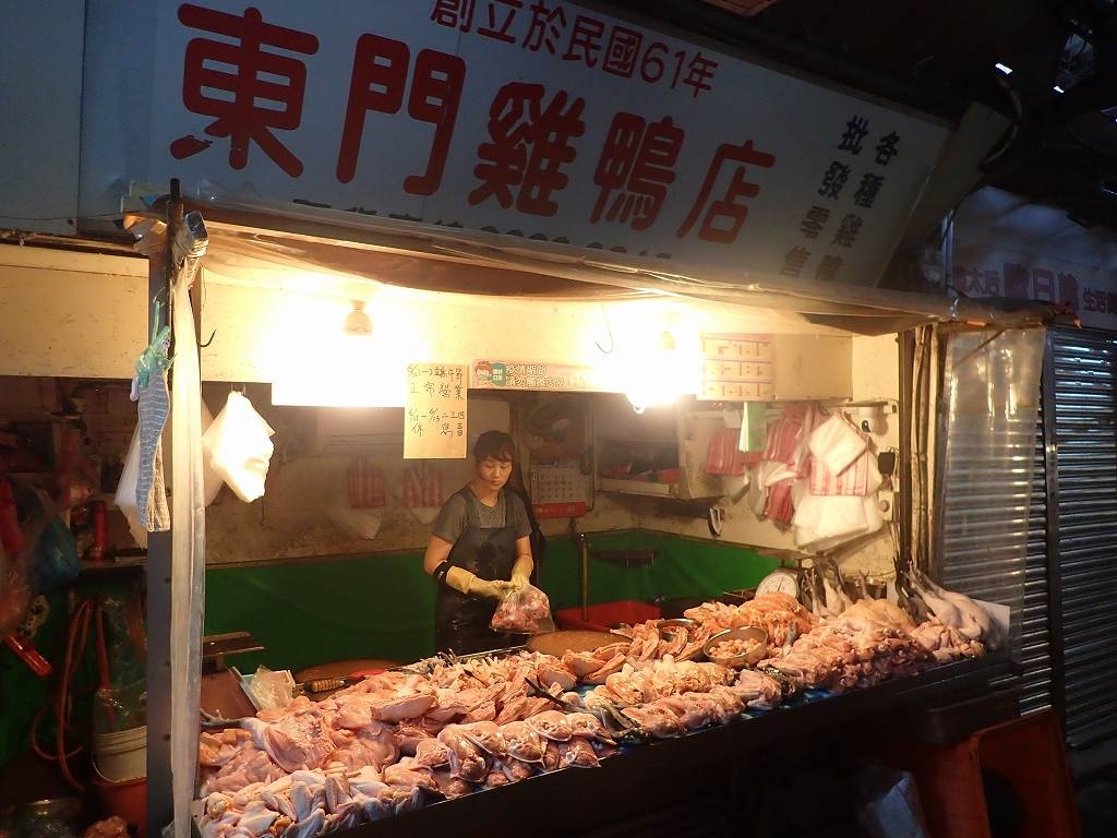 鶏肉を並べる店。新鮮そのものだが、これも見て、撮るだけ