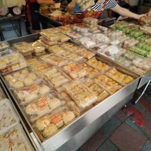 肉、野菜、魚などいろいろな食材を使った総菜が並ぶ
