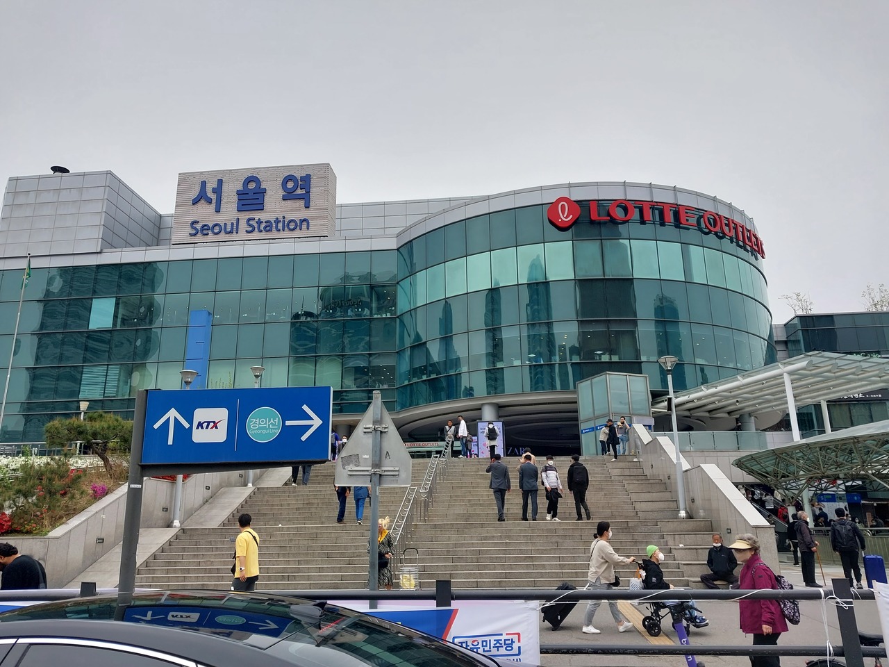 ソウル駅は、外から見ると、と...  続きを読むても大きく、さすが首都の中心の駅って感じです。駅前には、空港行きのバスターミナルもありました。  閉じる
