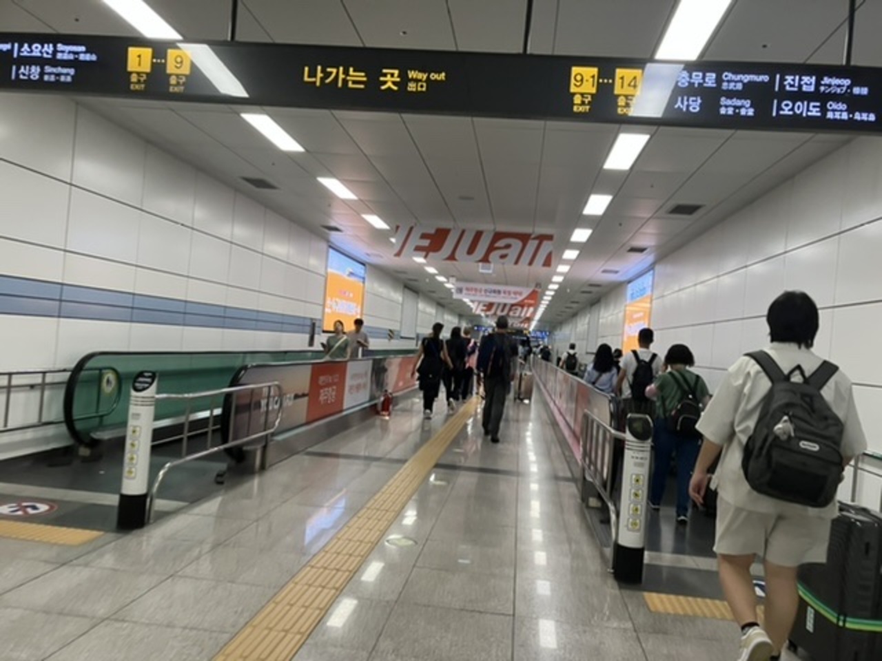 東大門のホテルから地下鉄に乗り、ソウル駅で仁川空港までの空港鉄道に乗り継ぎました。連絡通路が長すぎると口コミにありましたが...  続きを読む、許容範囲内でした。重いスーツケースを運ぶ人は大変に感じるのかもしれません。空港鉄道の始発駅なので、必ず座れるのがうれしいです。  閉じる