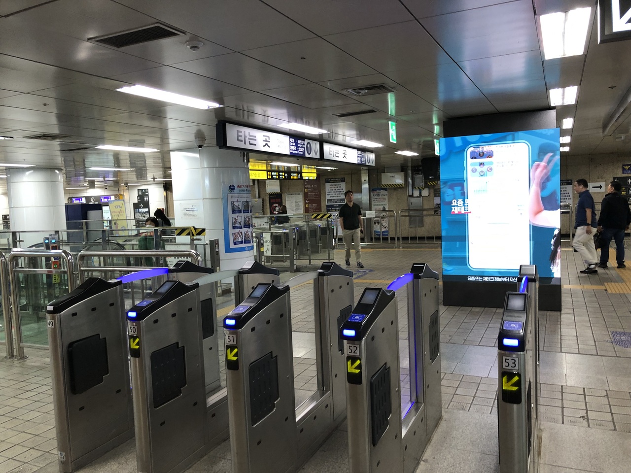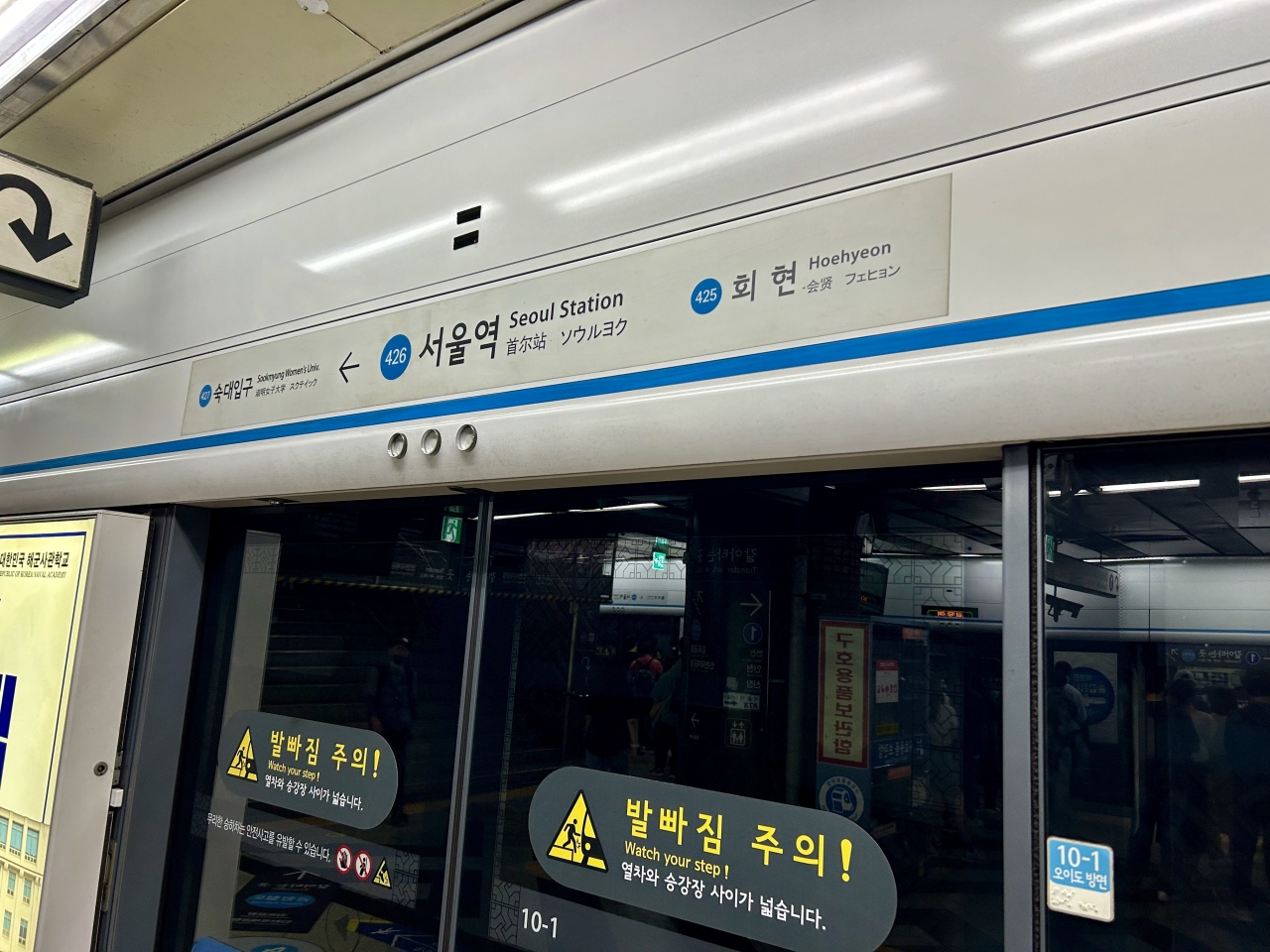 ソウル市内を張り巡る公共交通機関、地下鉄です。ソウル観光時はバスとともに良く利用しました。